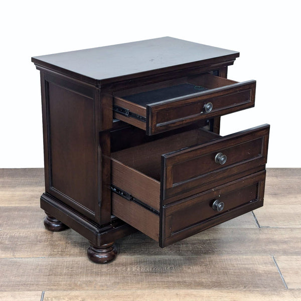 Handcrafted, the bar stool is made of selected American maple hardwoods using a 12-step state-of-the-art finishing process used to achieve the rich finish. Ornate hand-carved elements grace the arms, rolled back, and seat base.