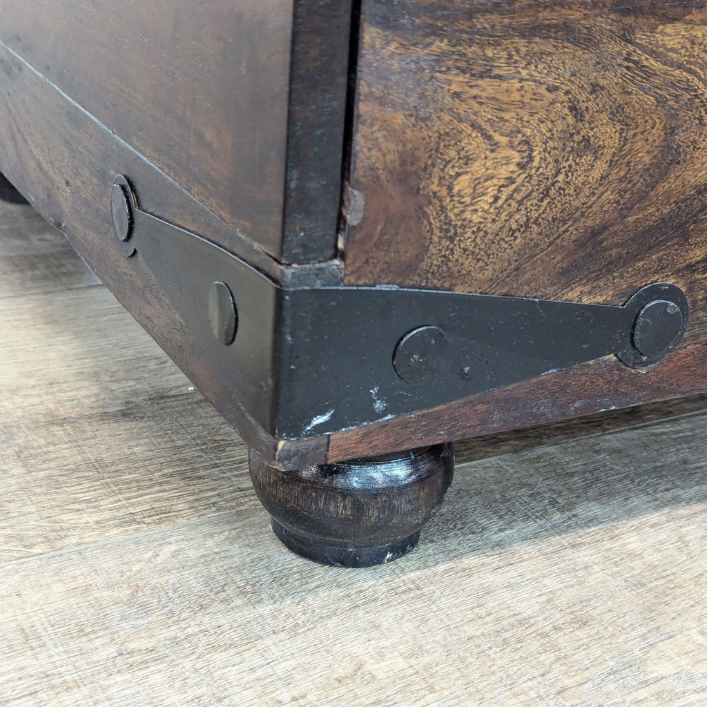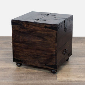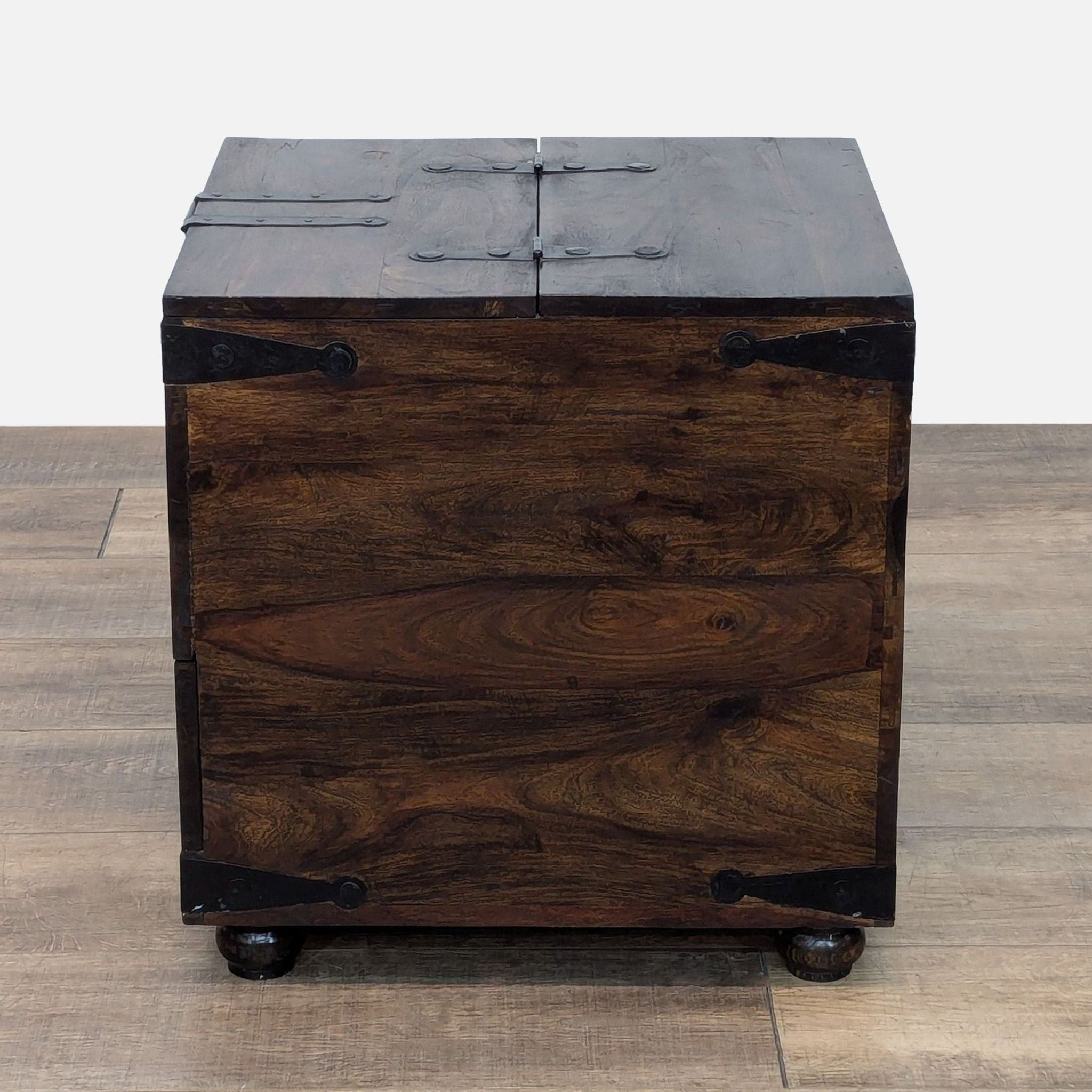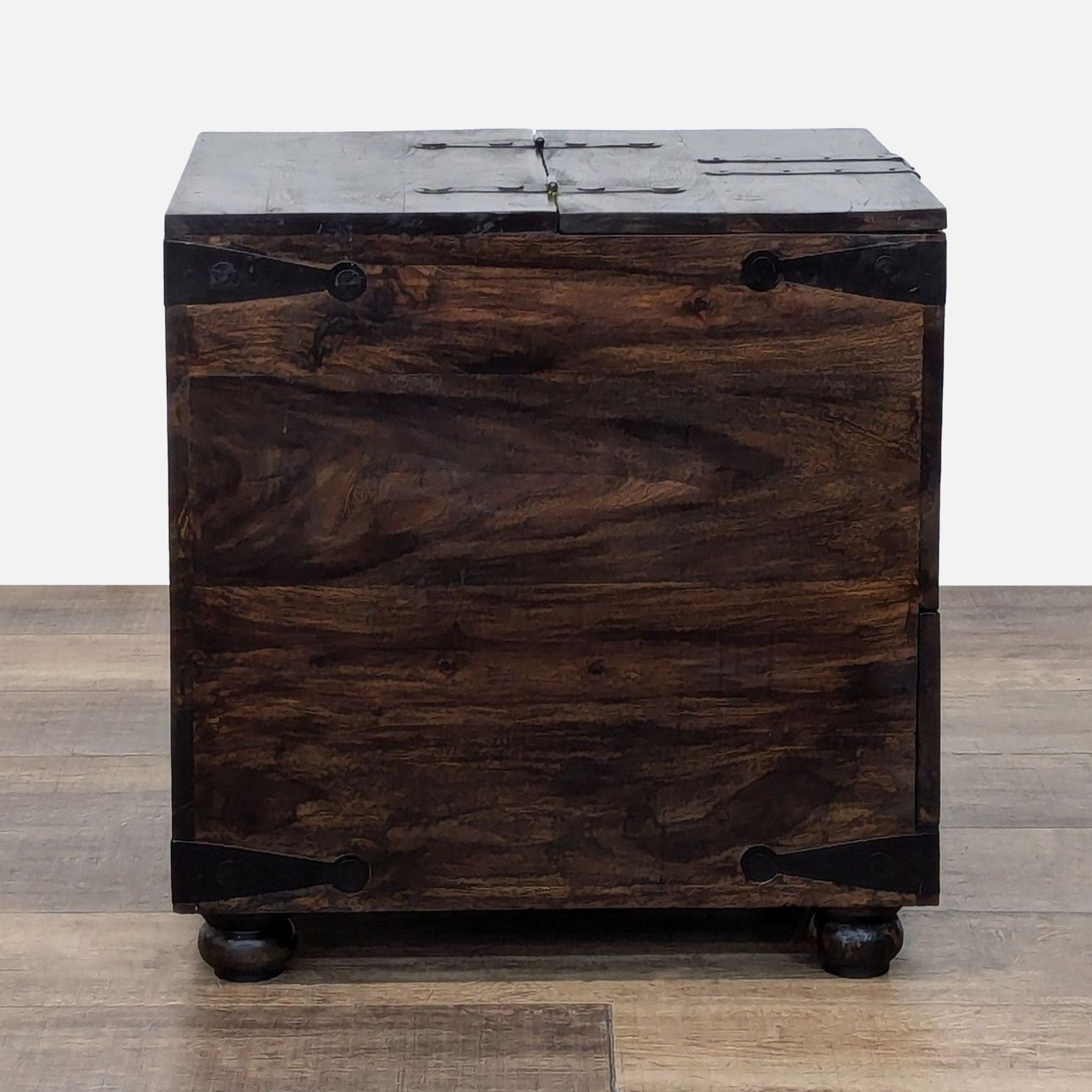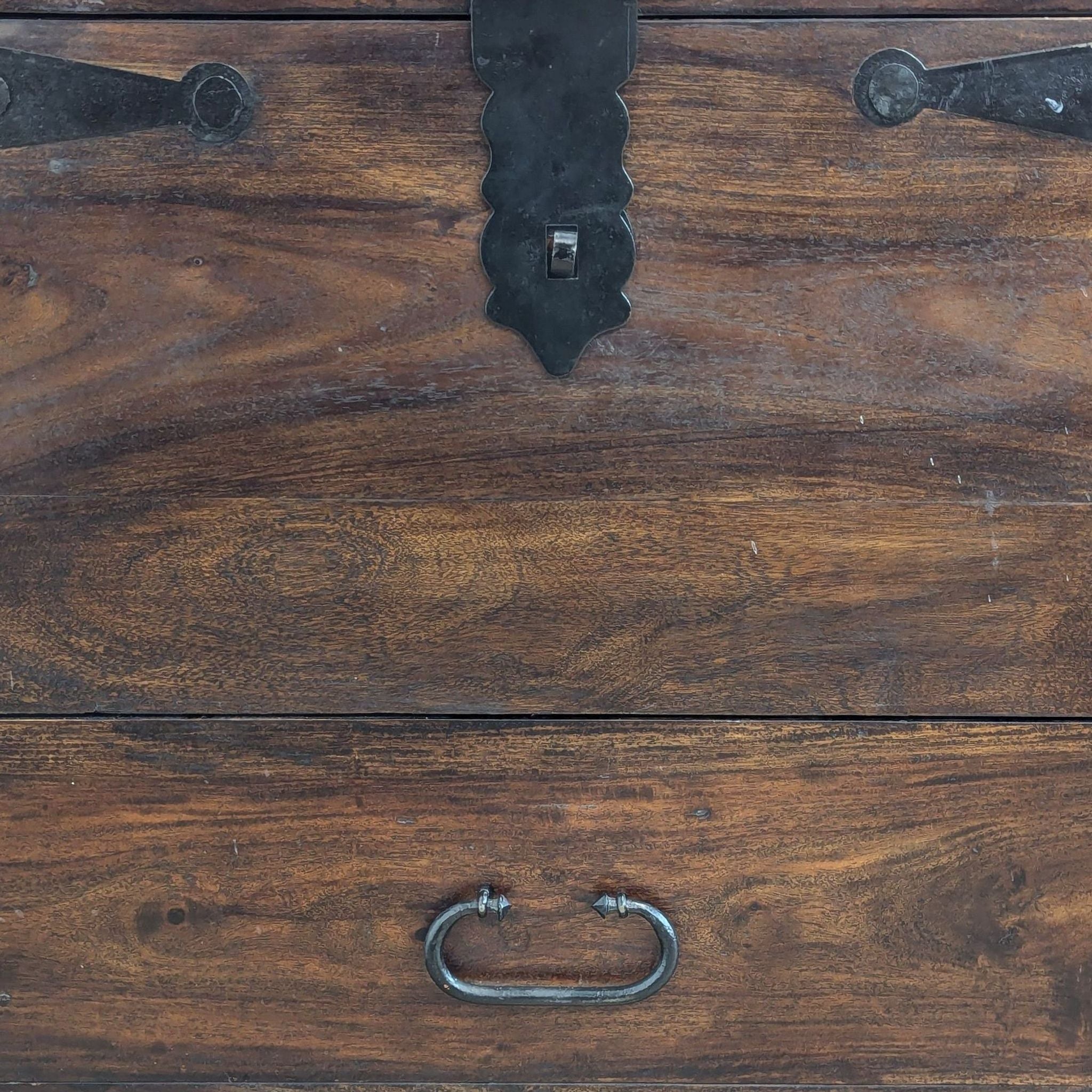 Flip-Top with tray and additional storage, one divided drawer, and metal embellishments.