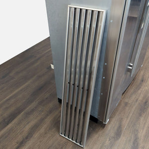 This Sub-Zero side-by-side refrigerator offers plenty of storage space with adjustable shelves, multiple drawers, and door bins. The stainless steel finish adds a modern touch to any kitchen. Features a built-in water and ice dispenser for convenience. Clean and functional, perfect for those who need reliable refrigeration. Some cosmetic wear is present, but overall in good working condition.