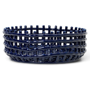 This handmade Ceramic Centerpiece recreates the familiar feel of woven containers. This multifunctional design is ideal as a fruit or bread basket, and is sure to be the central piece at any table setting.