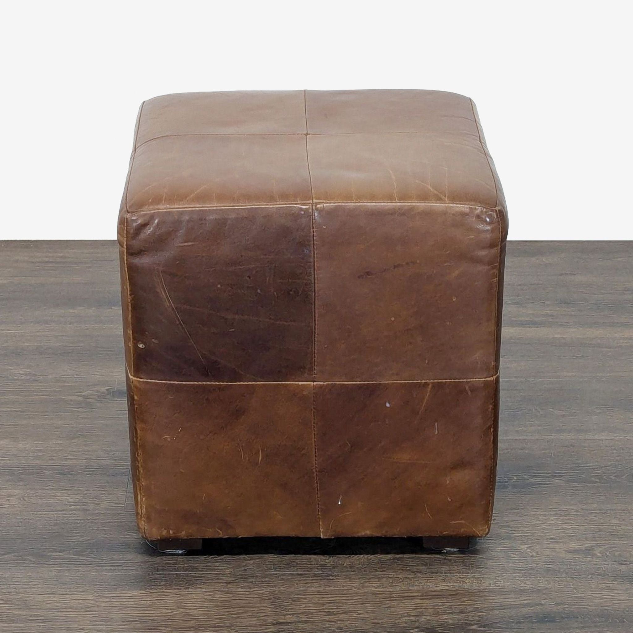 Restoration Hardware Leather Ottoman Cube - Reperch