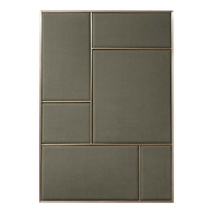 The Nouveau Pin from Please Wait to be Seated is a notice board with a graphic rectangular grid-inspired by both modern architecture and Art Nouveau. The board is in oyster grey canvas with a brass grid.