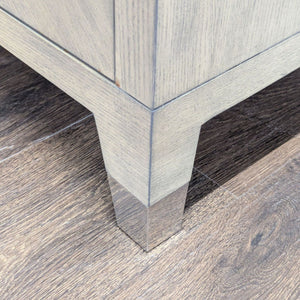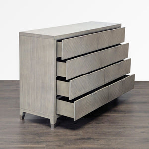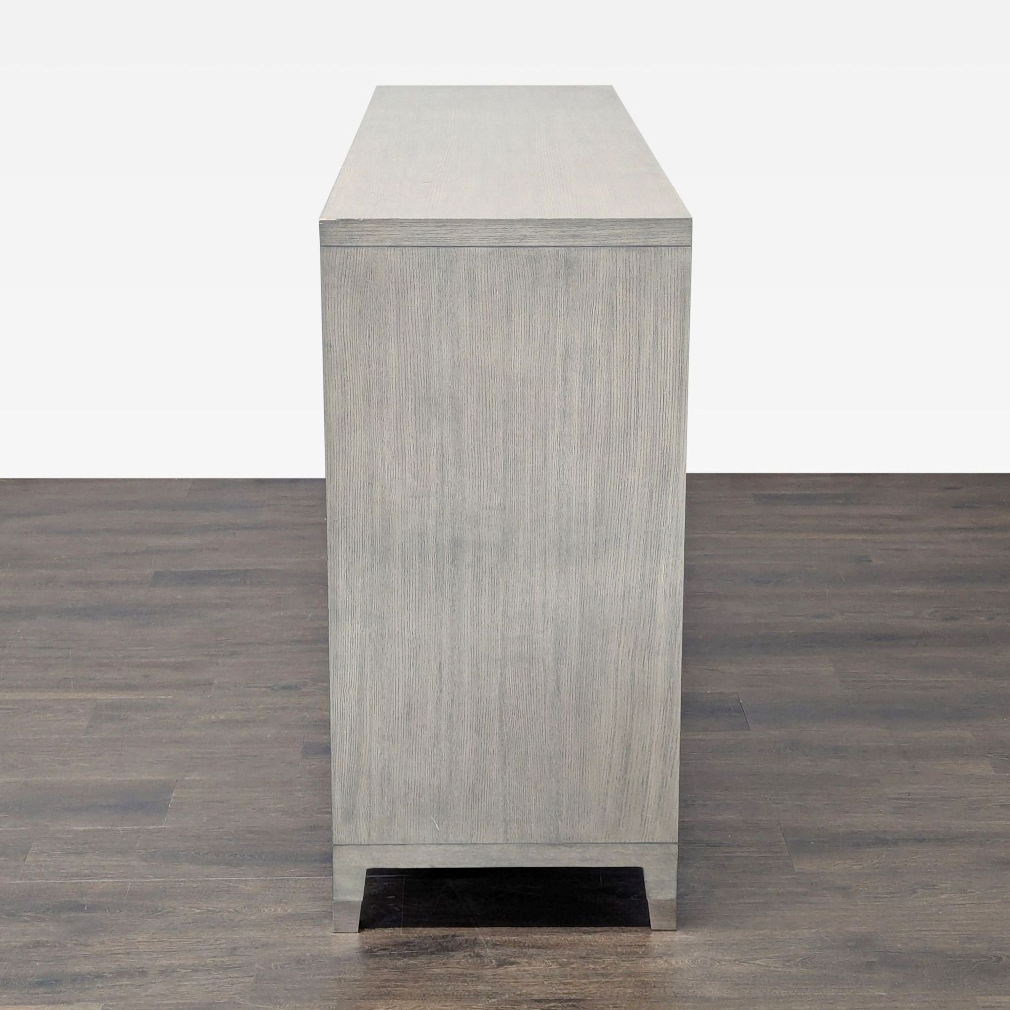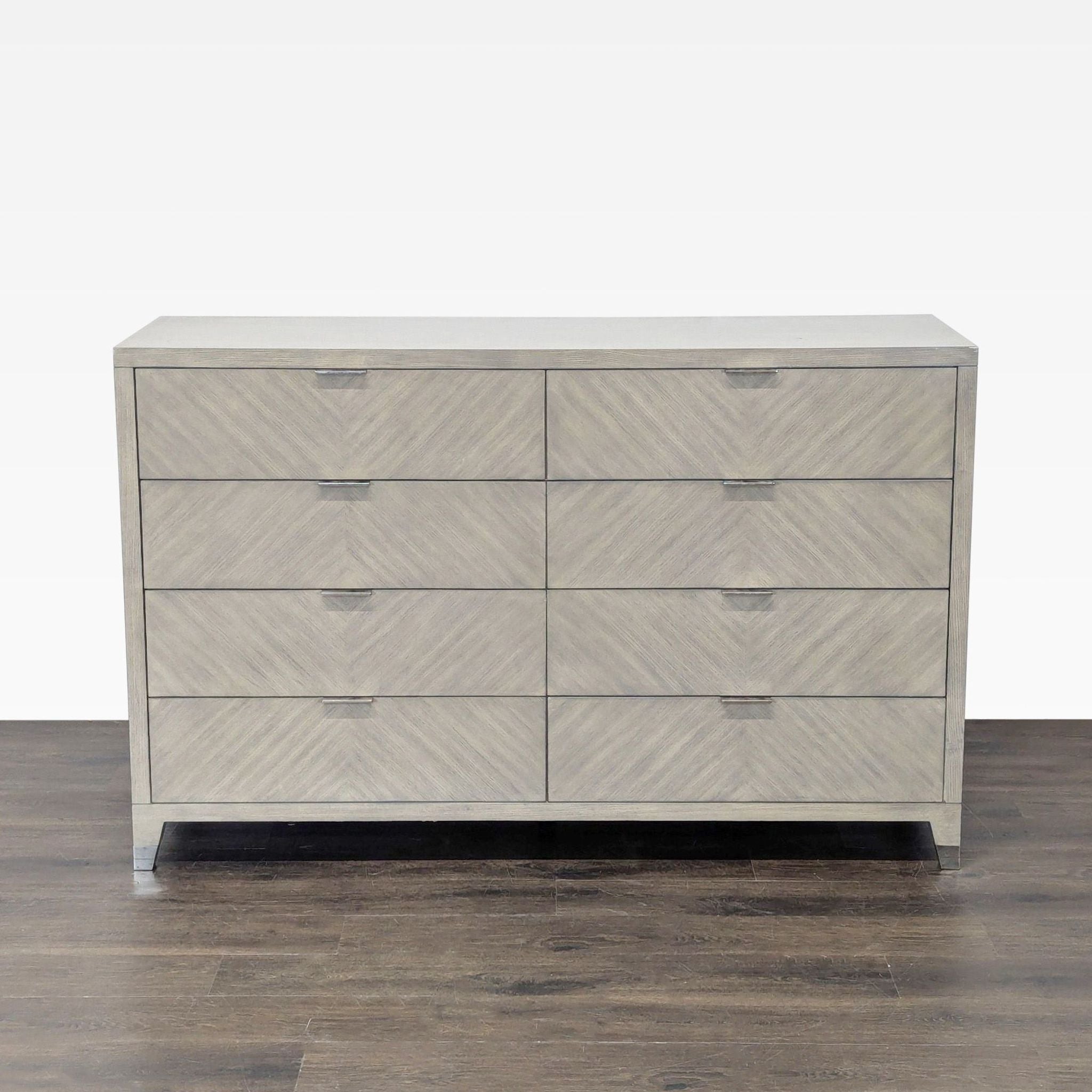 This Williams Sonoma Home dresser features a sleek gray wood finish and a modern, clean-lined design. With eight spacious drawers, it offers plenty of storage for clothes or essentials. The dresser's neutral color makes it easy to fit into any decor, and its sturdy build ensures long-lasting use. Ideal for bedrooms or living spaces looking for style and function.