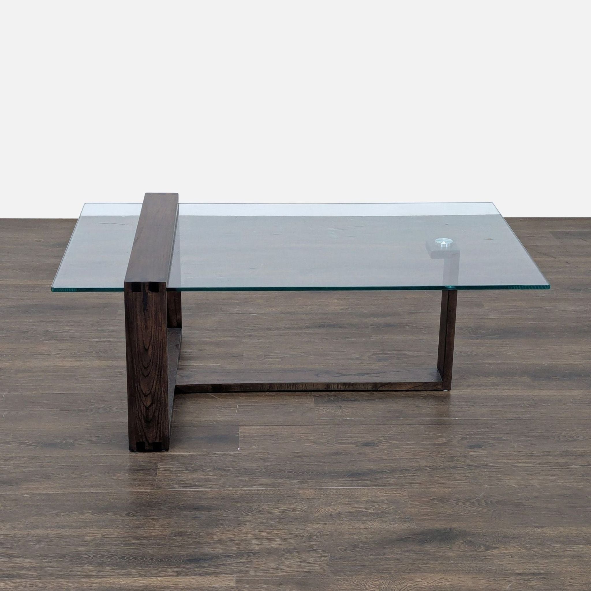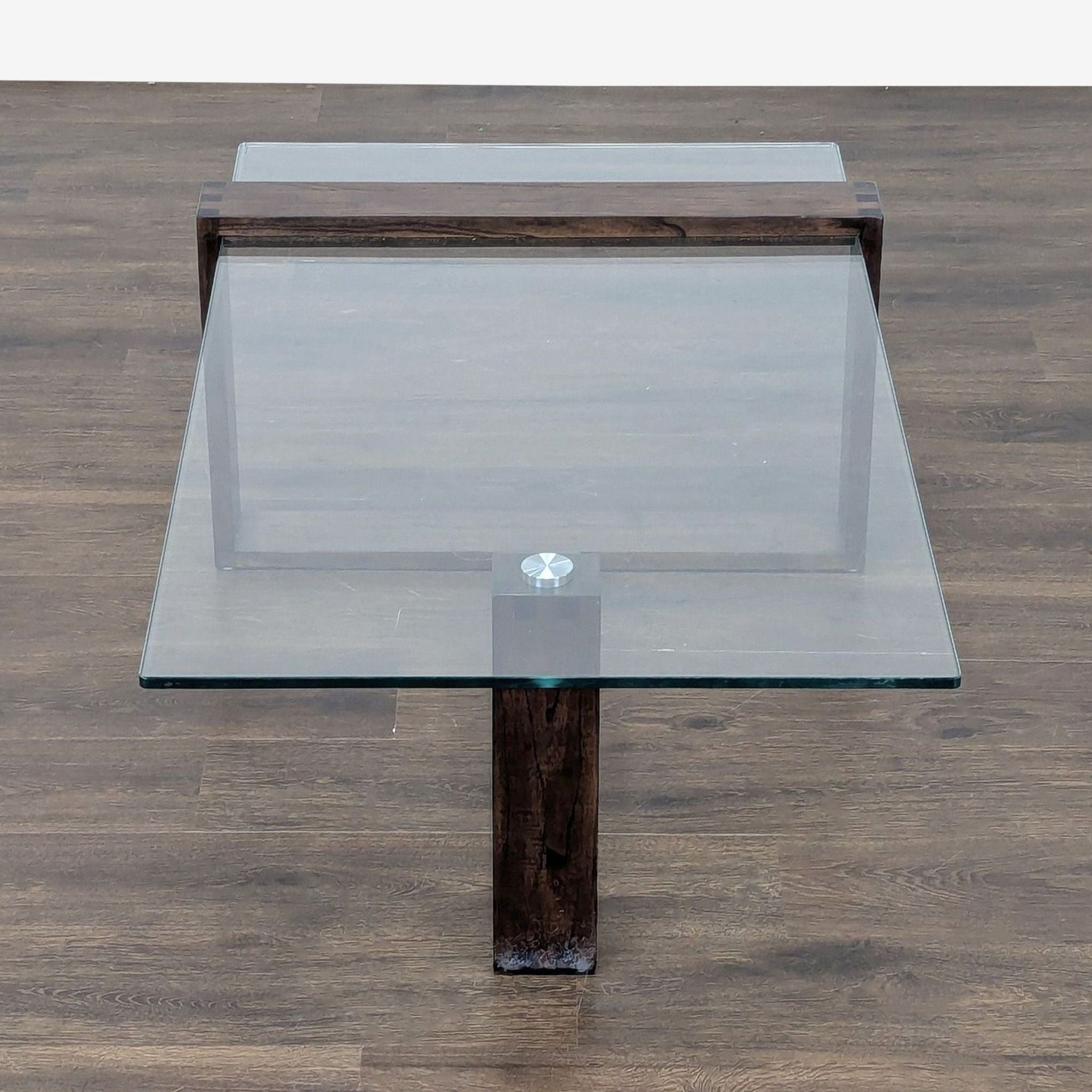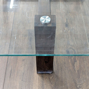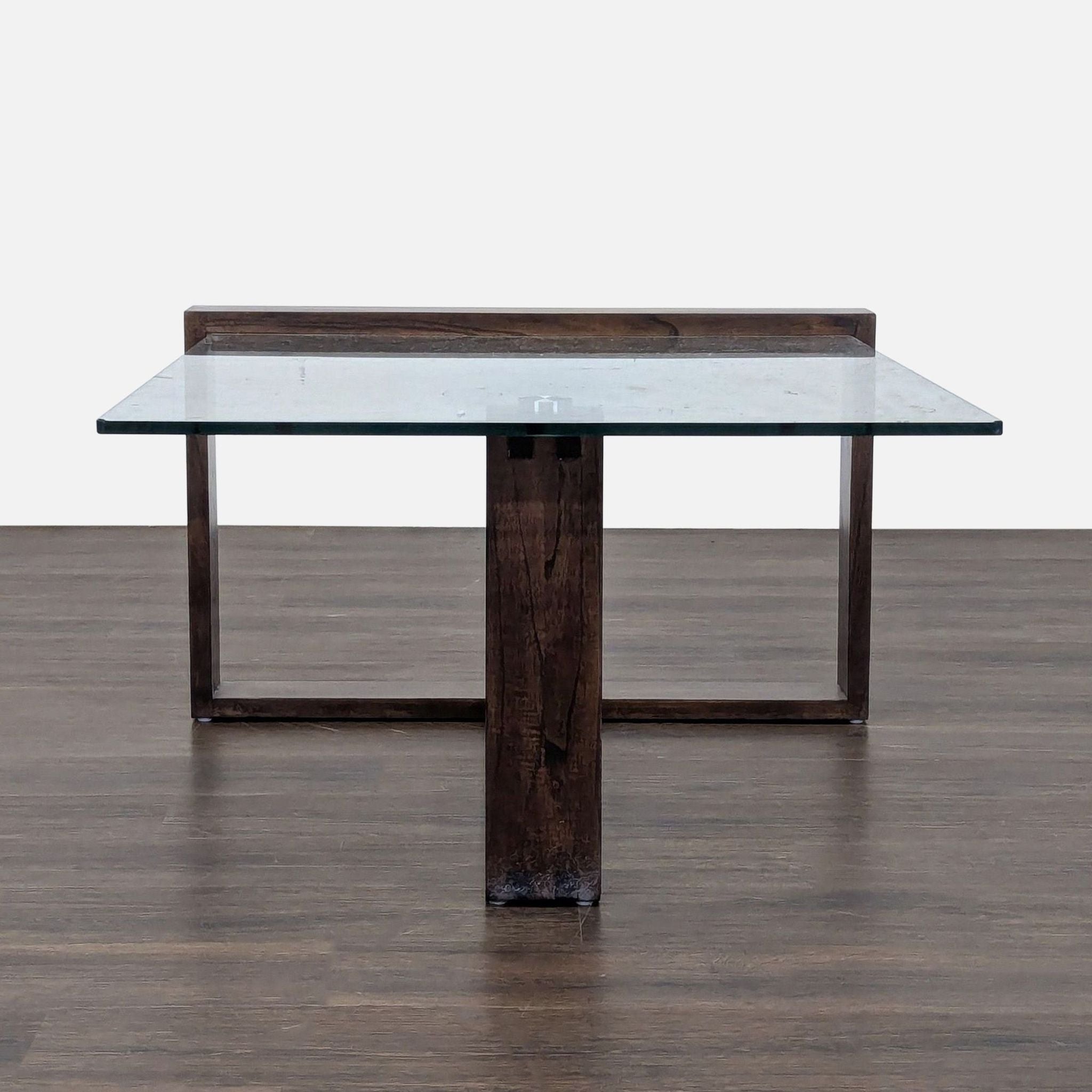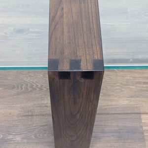 Mindi wood base and tempered glass top