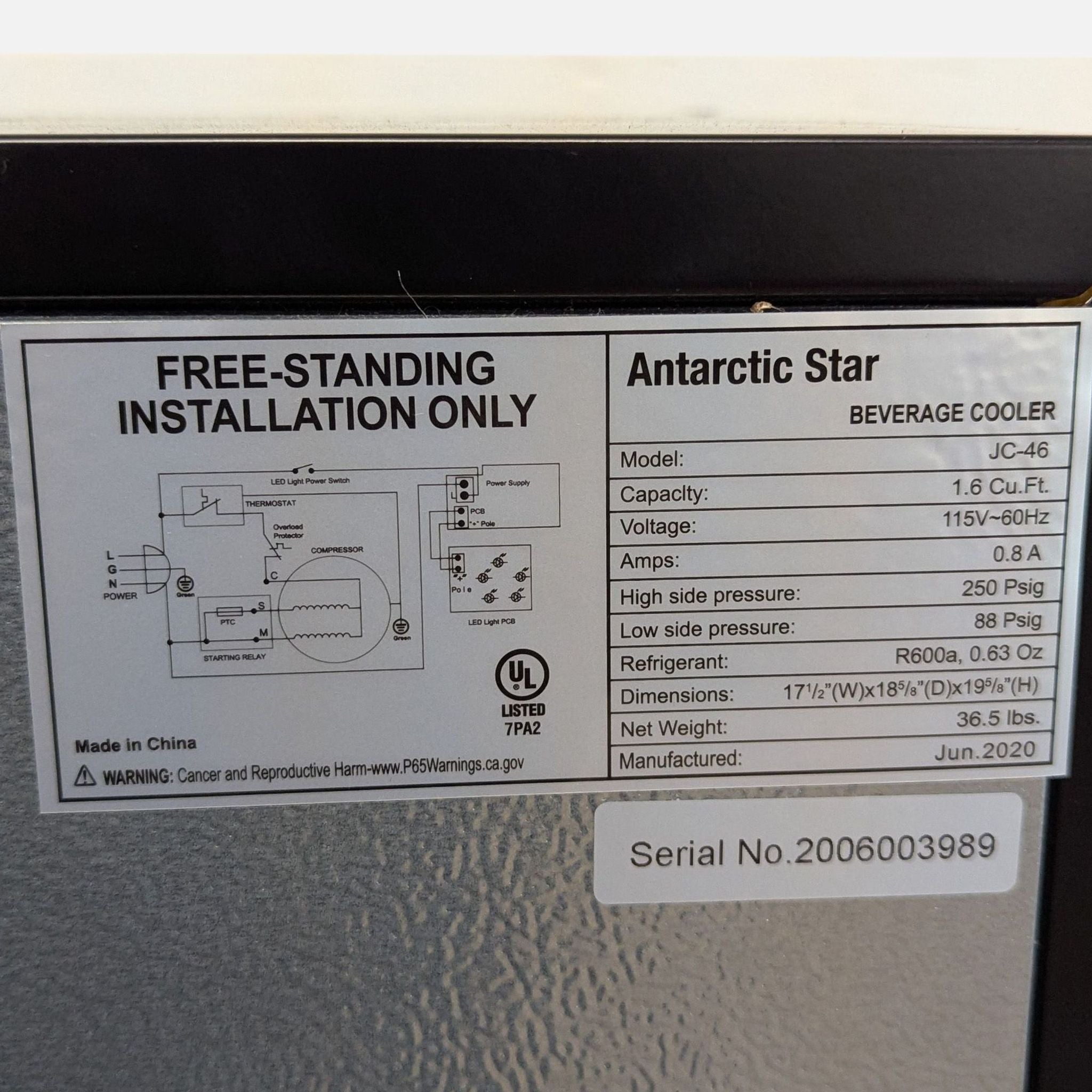 This Antarctic Star compact refrigerator features a sleek glass door and two adjustable shelves, making it perfect for storing drinks, snacks, or small groceries. Its modern design fits easily on countertops or under desks, ideal for home, office, or dorm use. Enjoy reliable cooling in a compact and stylish package.