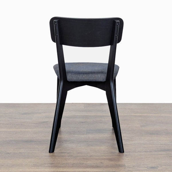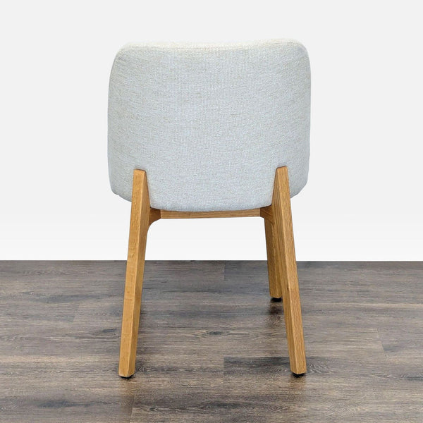 Features taupe tufted upholstery with tapered wood block feet.