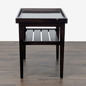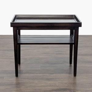 Wooden End Table with "Tray Top" and Slatted Shelf