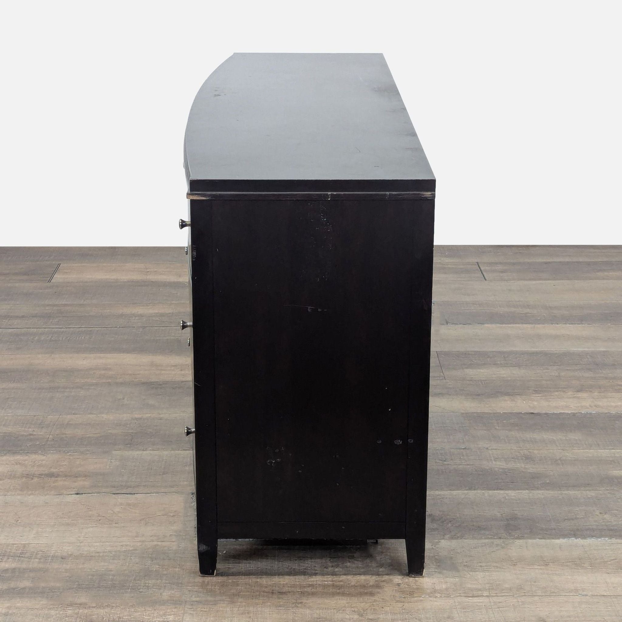 Features a bowed front with 6 drawers on metal glides.
