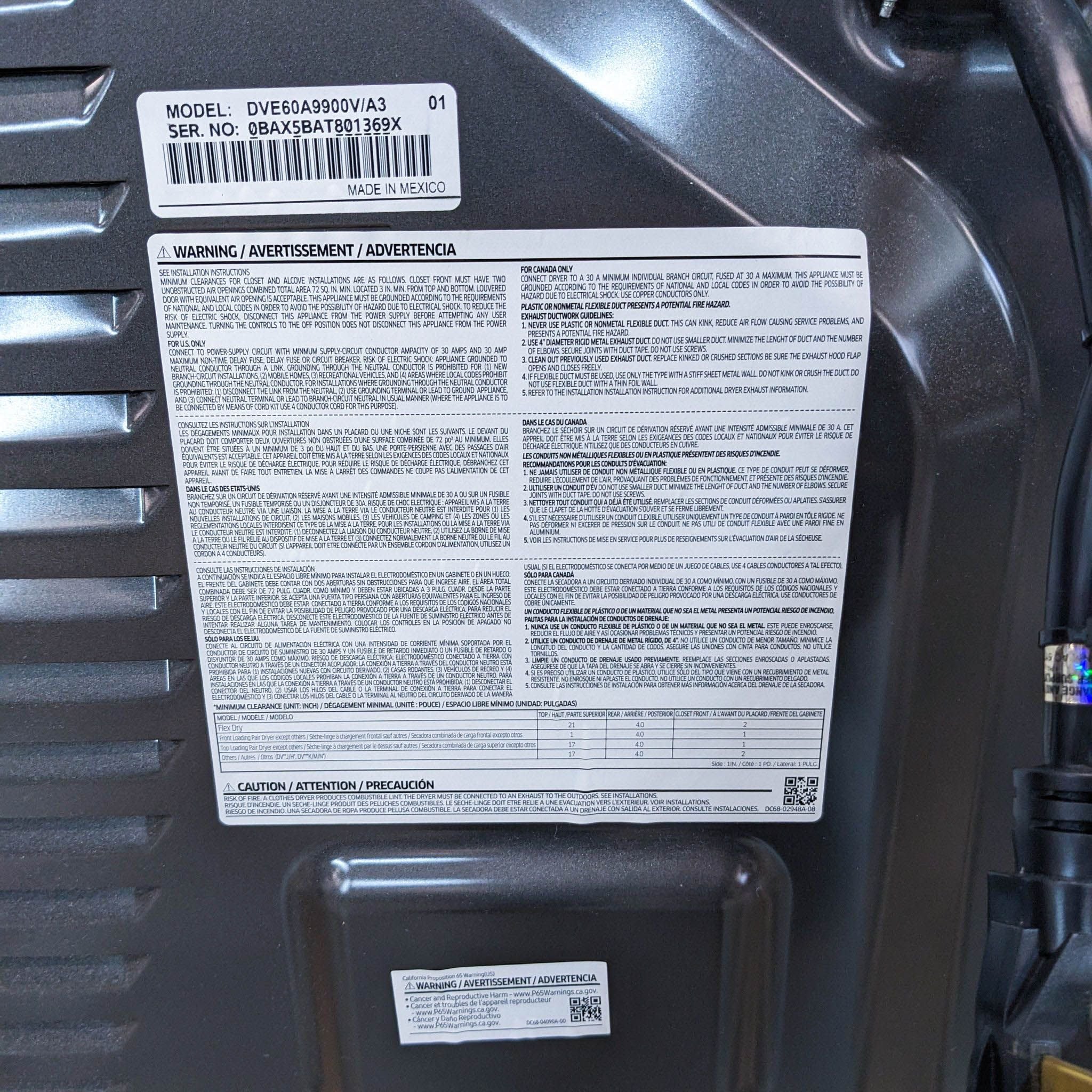 Model DVE60A9900V/A3