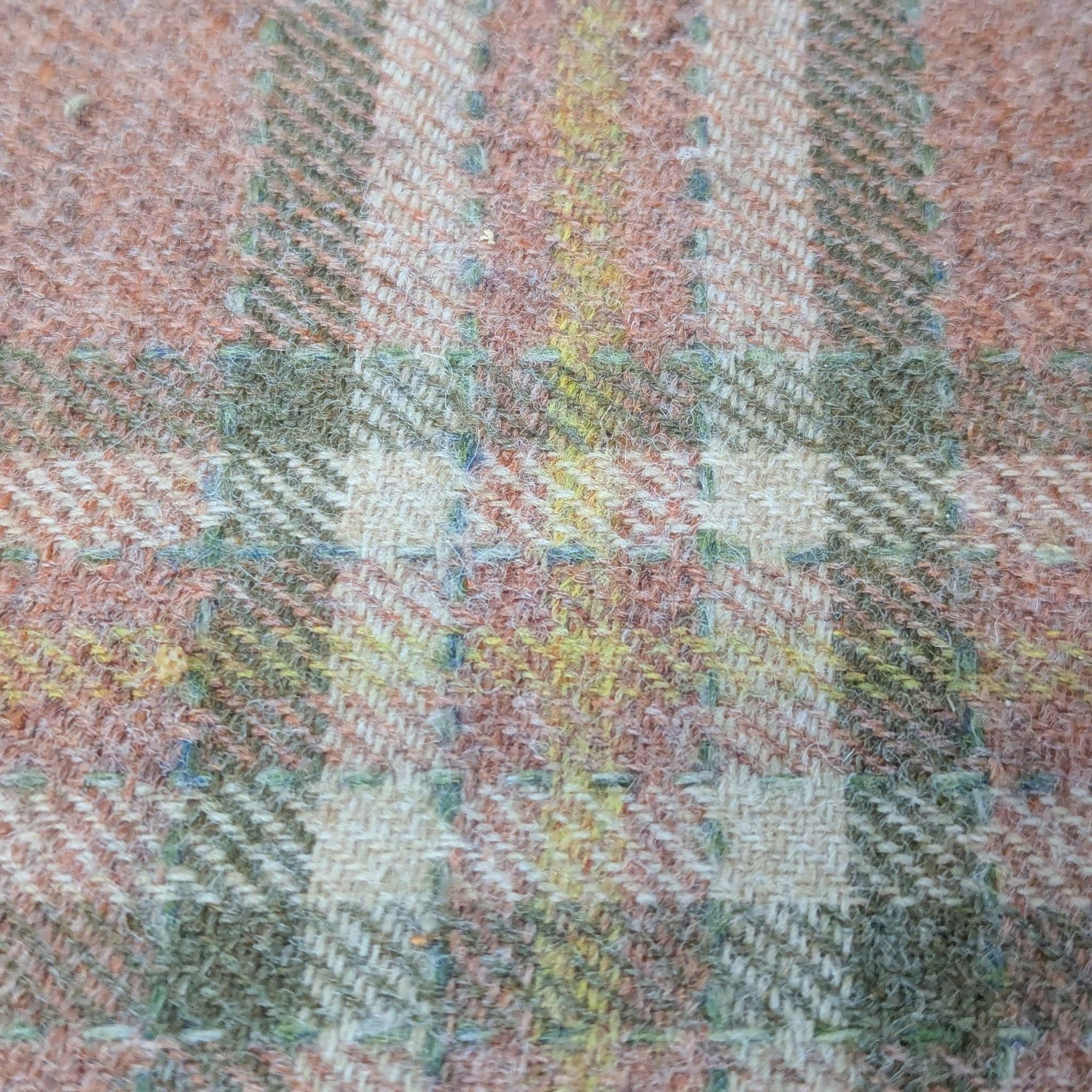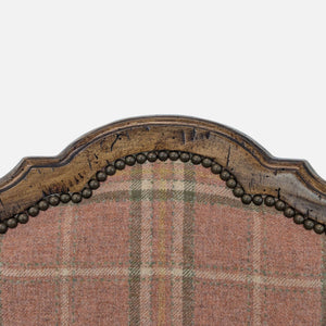 Partial swivel traditional style wood chair with high back and plaid upholstery with nailhead trim