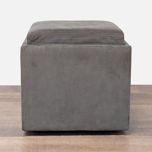 Premium high-density, high-resiliency foam seats with double-needle top stitching, storage, and a wood tray. The ottoman is on casters.