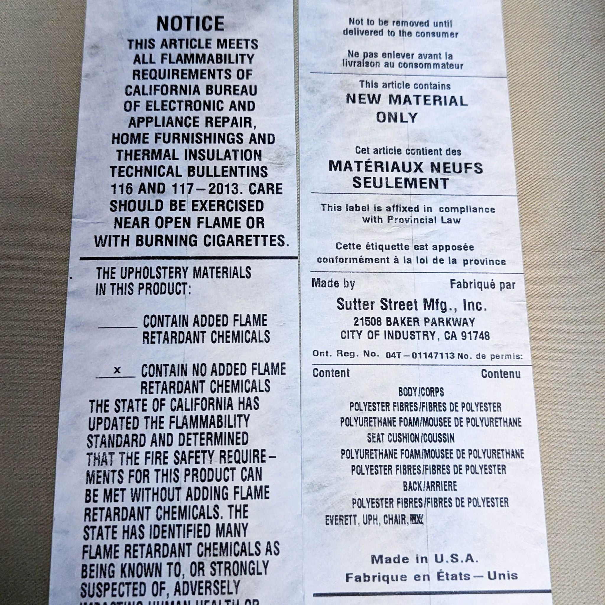 | Item Location | Bay Area |