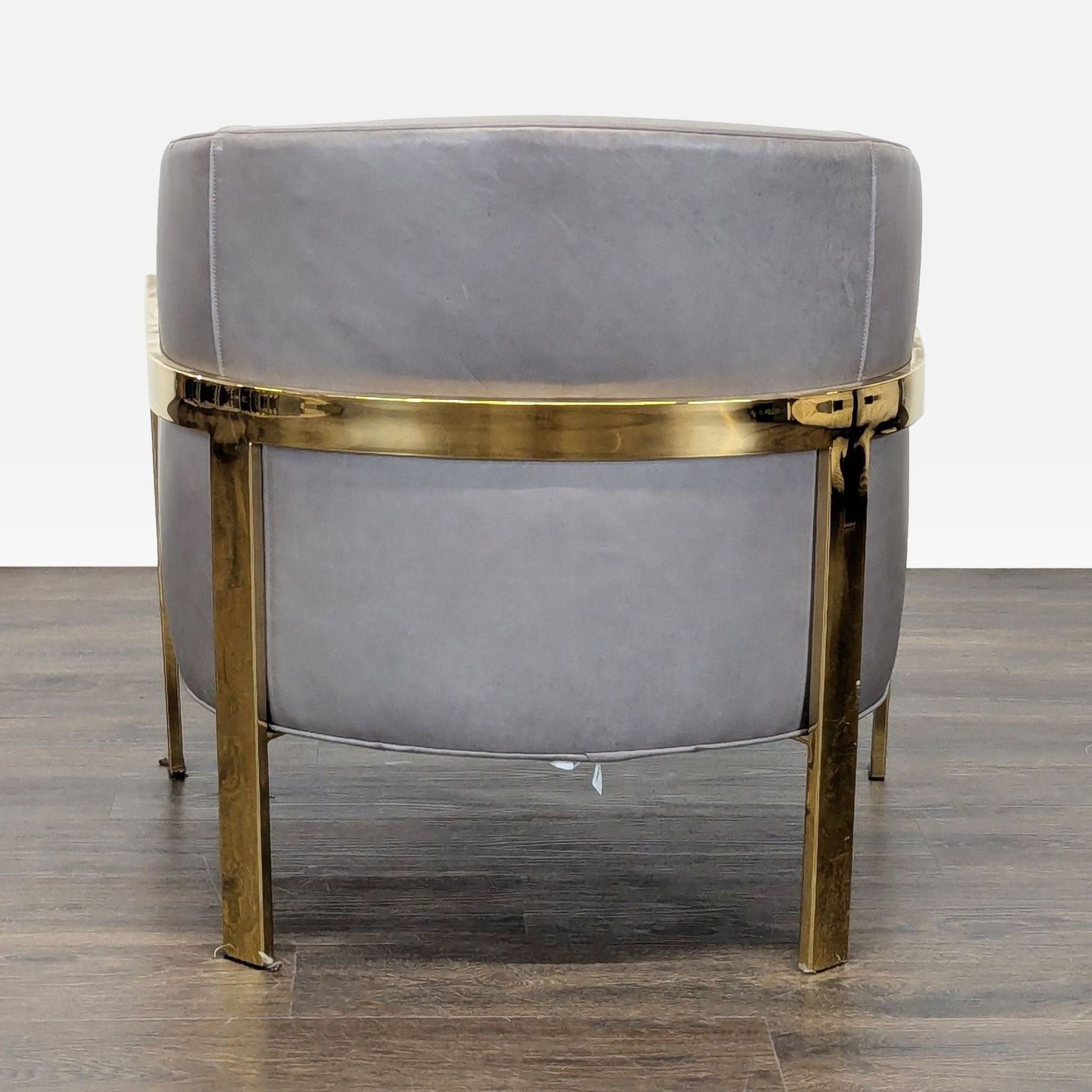 Restoration Hardware Reginald Modern Grey Leather Lounge Chair with Brass Frame
