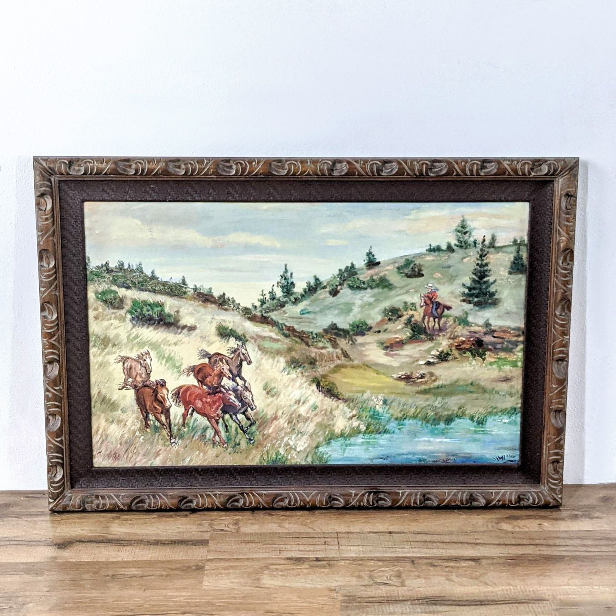 Painting Of Cowboy And Horses Signed by Well Known New York Artist And Cartoonist, Sandy Huffaker (1943-2020)