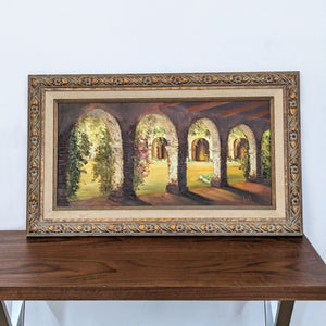 Framed Curved Arch Courtyard Painting Signed By Artist King