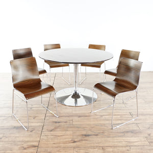 Calligaris Macassar Italian dining set with chrome base table and 6 stackable chairs