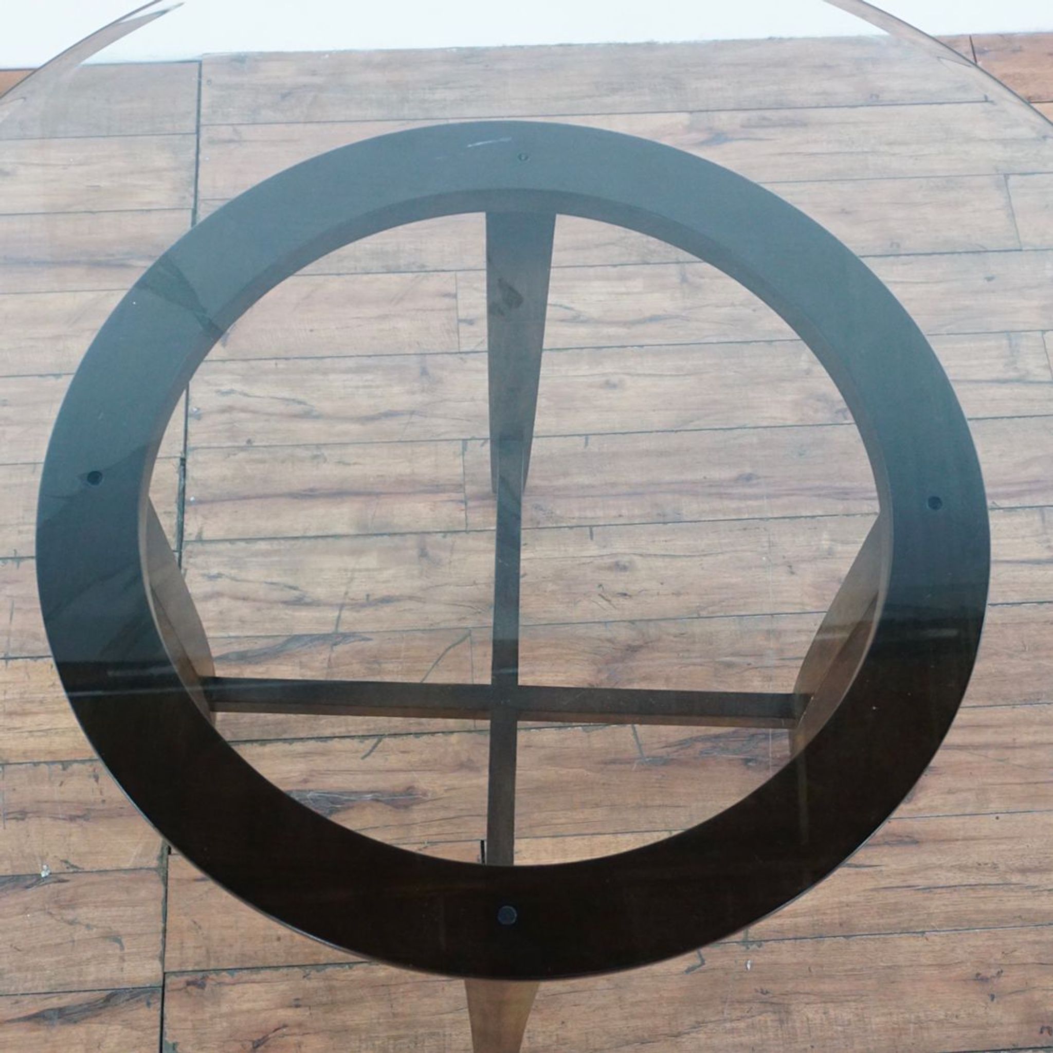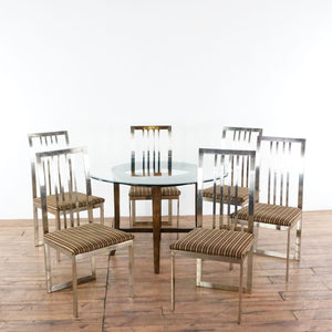 Glass top table with wood base and 6 chairs with chrome frame