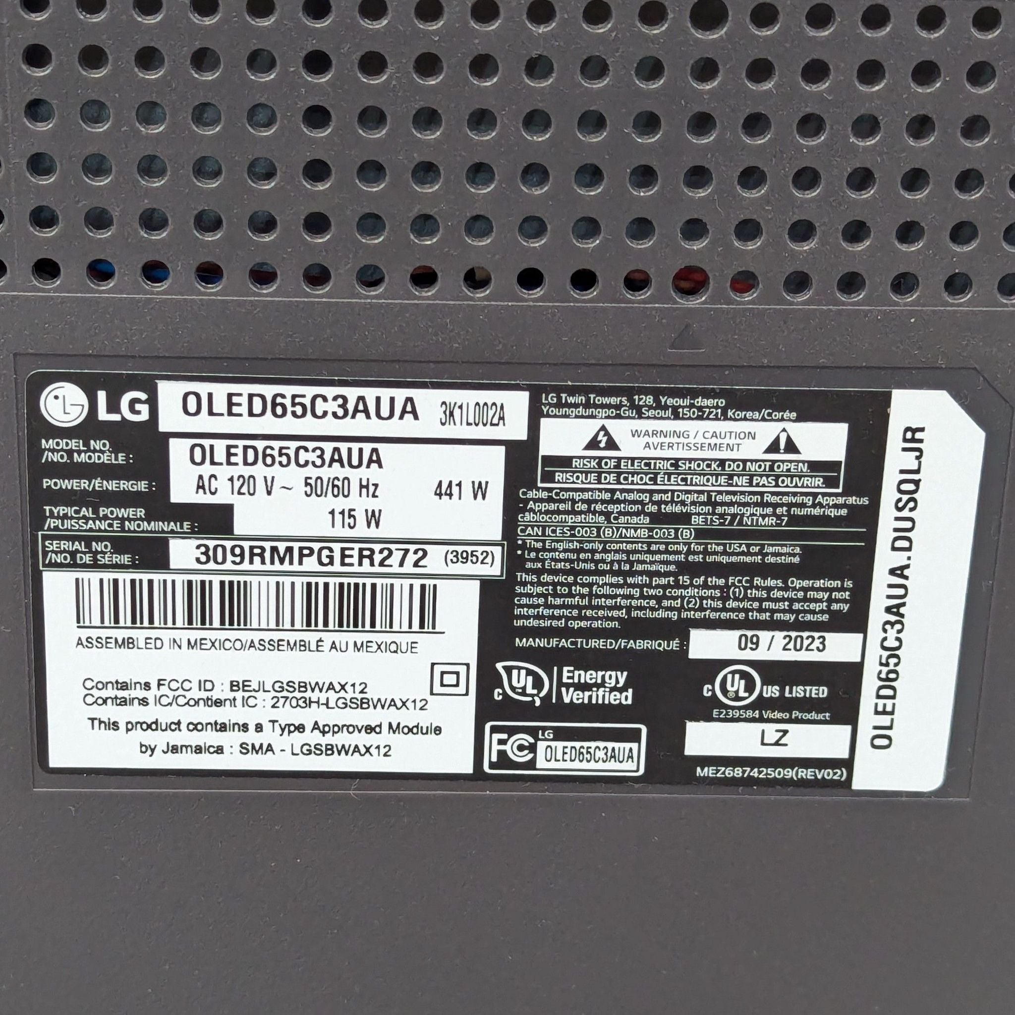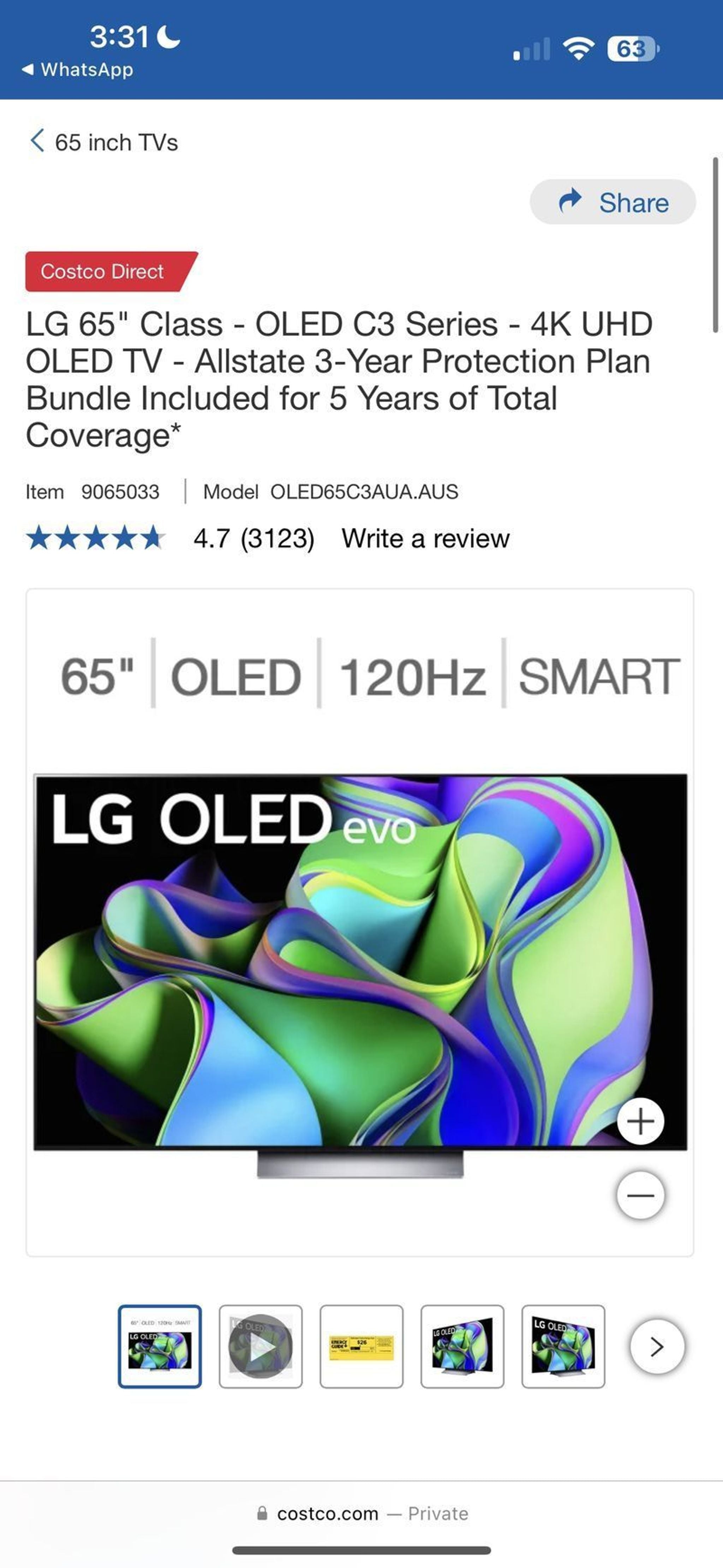 | Model | OLED65C3AUA |