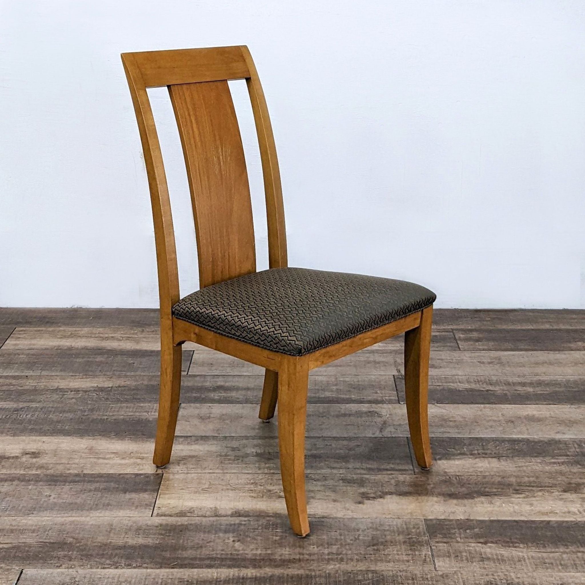 This side chair by Ethan Allen features contemporary design constructed with a wood frame and upholstered cushioned seat.