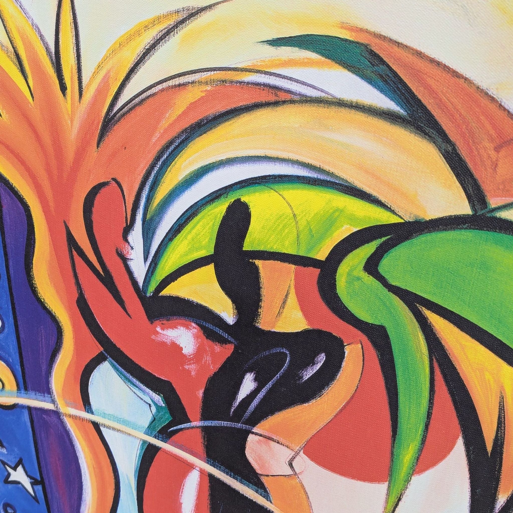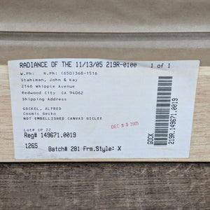 Non embellished Giclee on canvas by Alfred Gockel titled “Cosmic Gecko” in frame.