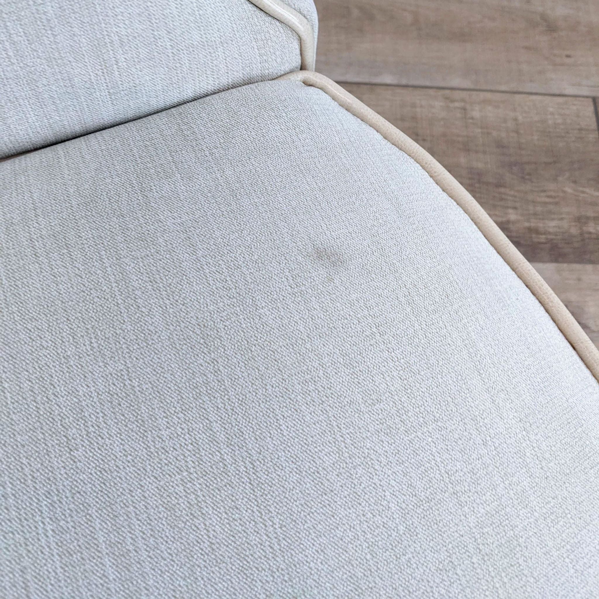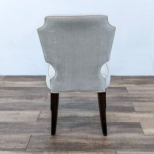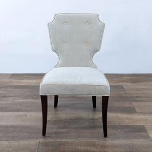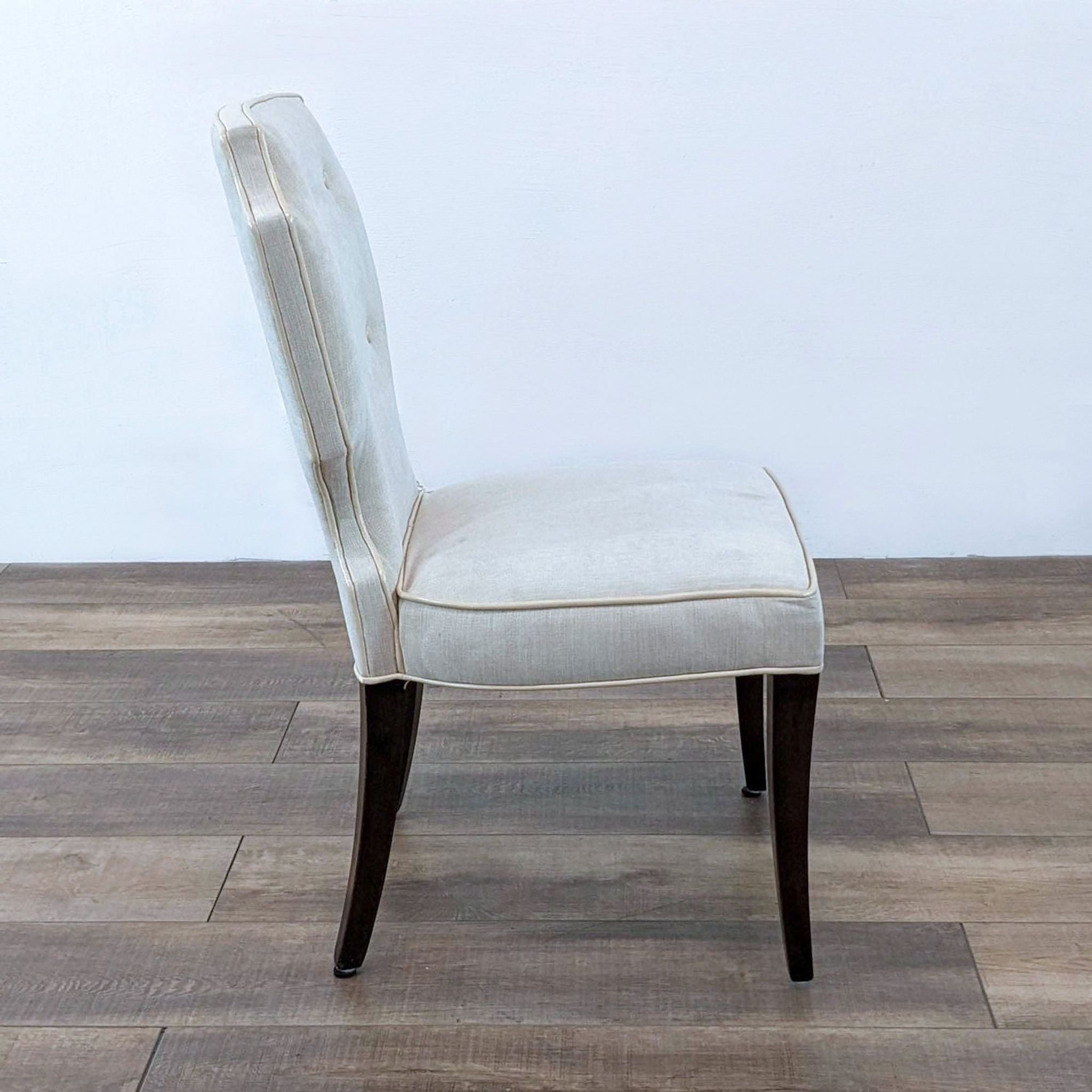 Pair of Oliixx upholstered dining chairs with button tufted backs, faux leather welted trim and wood legs.