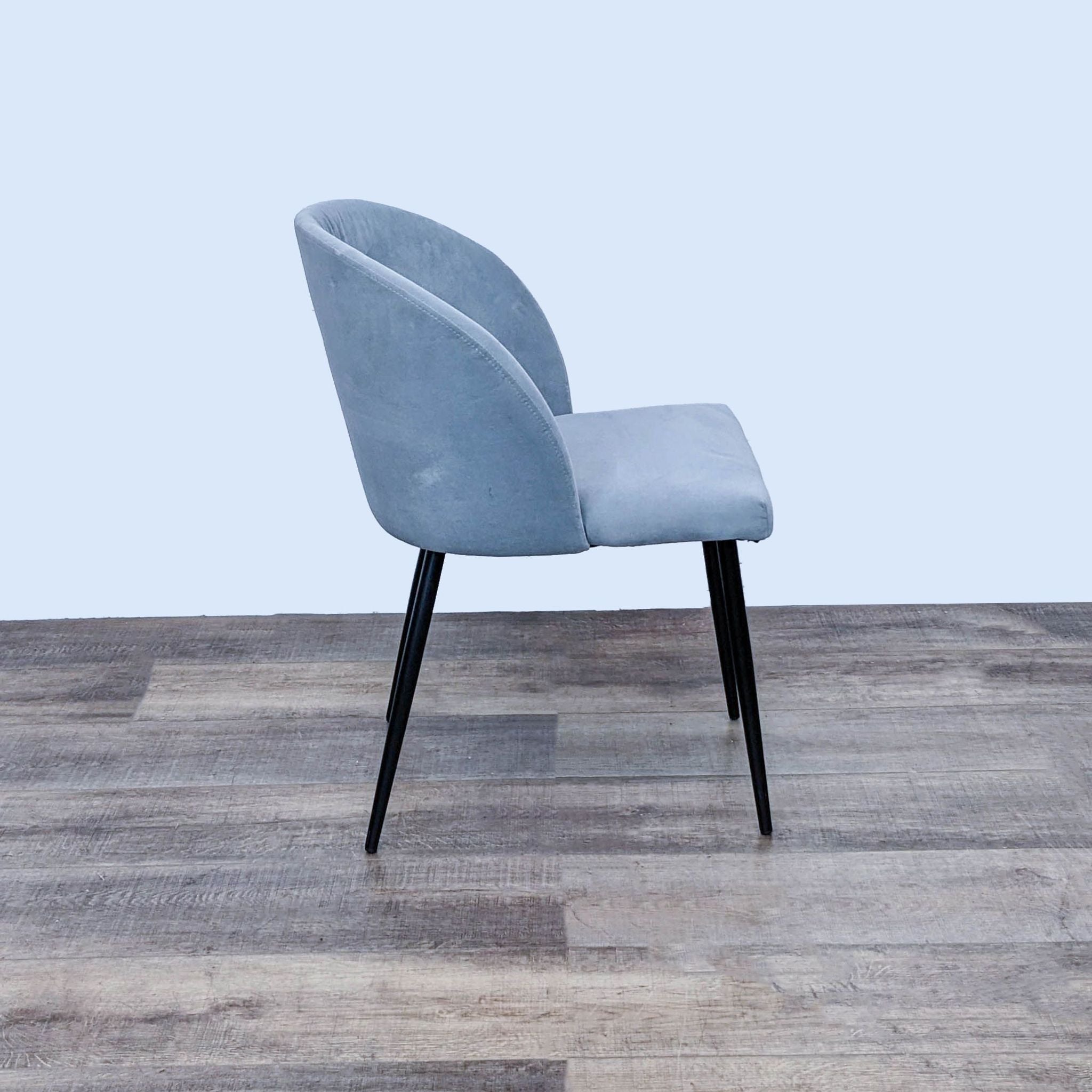 This contemporary styled dining chair by Terrace Living features a curved back with soft velvet upholstery and sturdy metal legs.