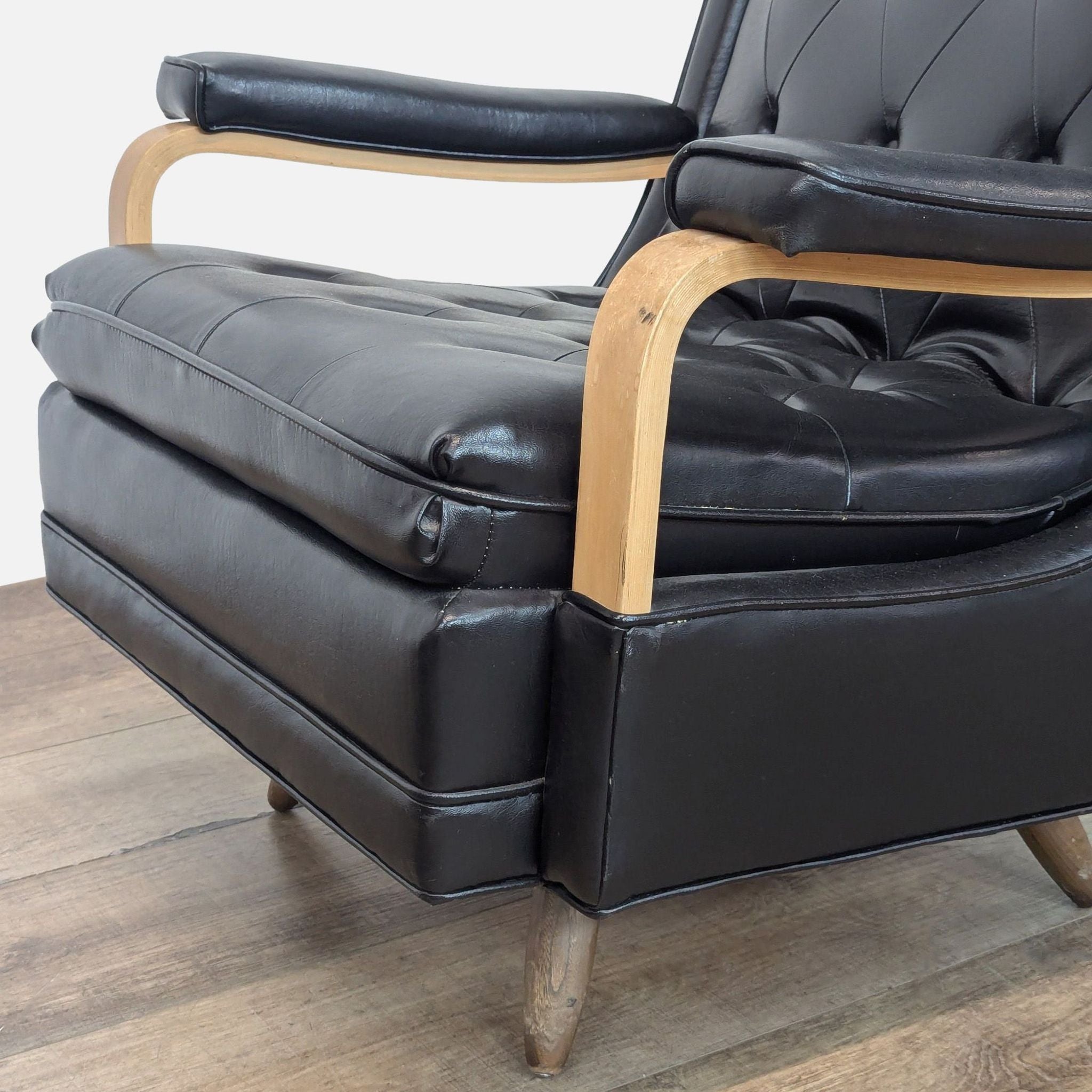 Mid-Century Style Black Tufted Leather Lounge Chair - Reperch