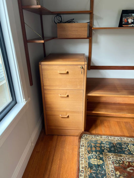 Lockable 2 drawer mobile cabinet with cushioned seat.