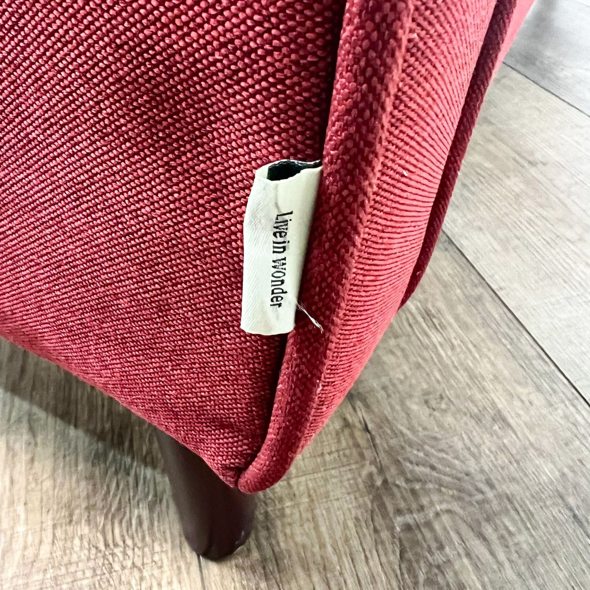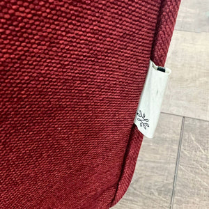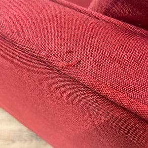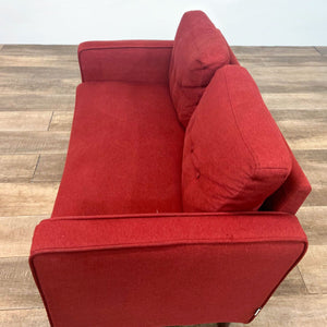 Red Loveseat With Bench Seat, Two Tufted Back Cushions, Narrow Arms And Tapered Wood Finish Feet