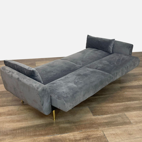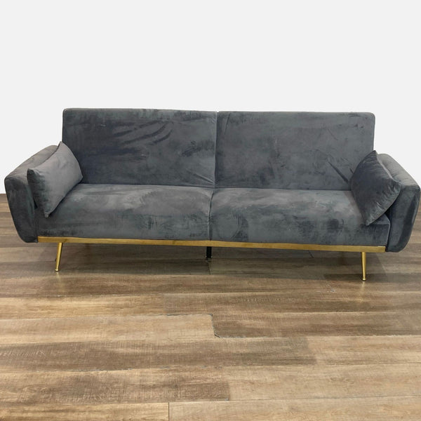 Grey sofa with pullout sleeper.