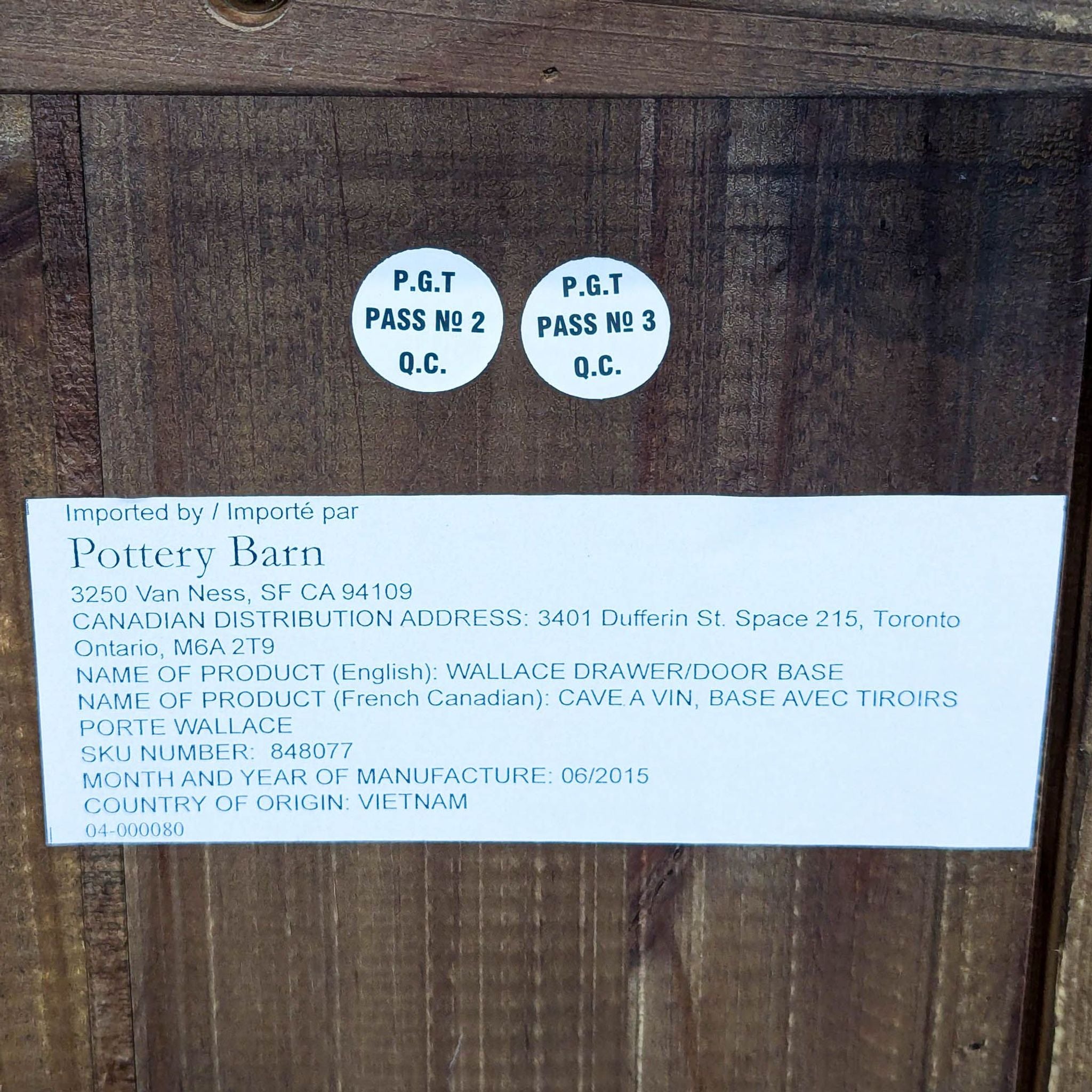 | Item Location | Bay Area |