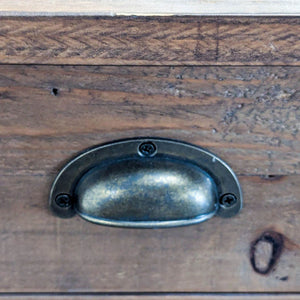 Reclaimed wood cabinet with drawers and a cabinet shelf