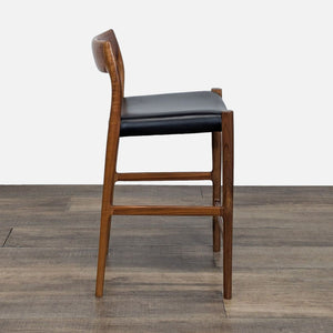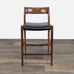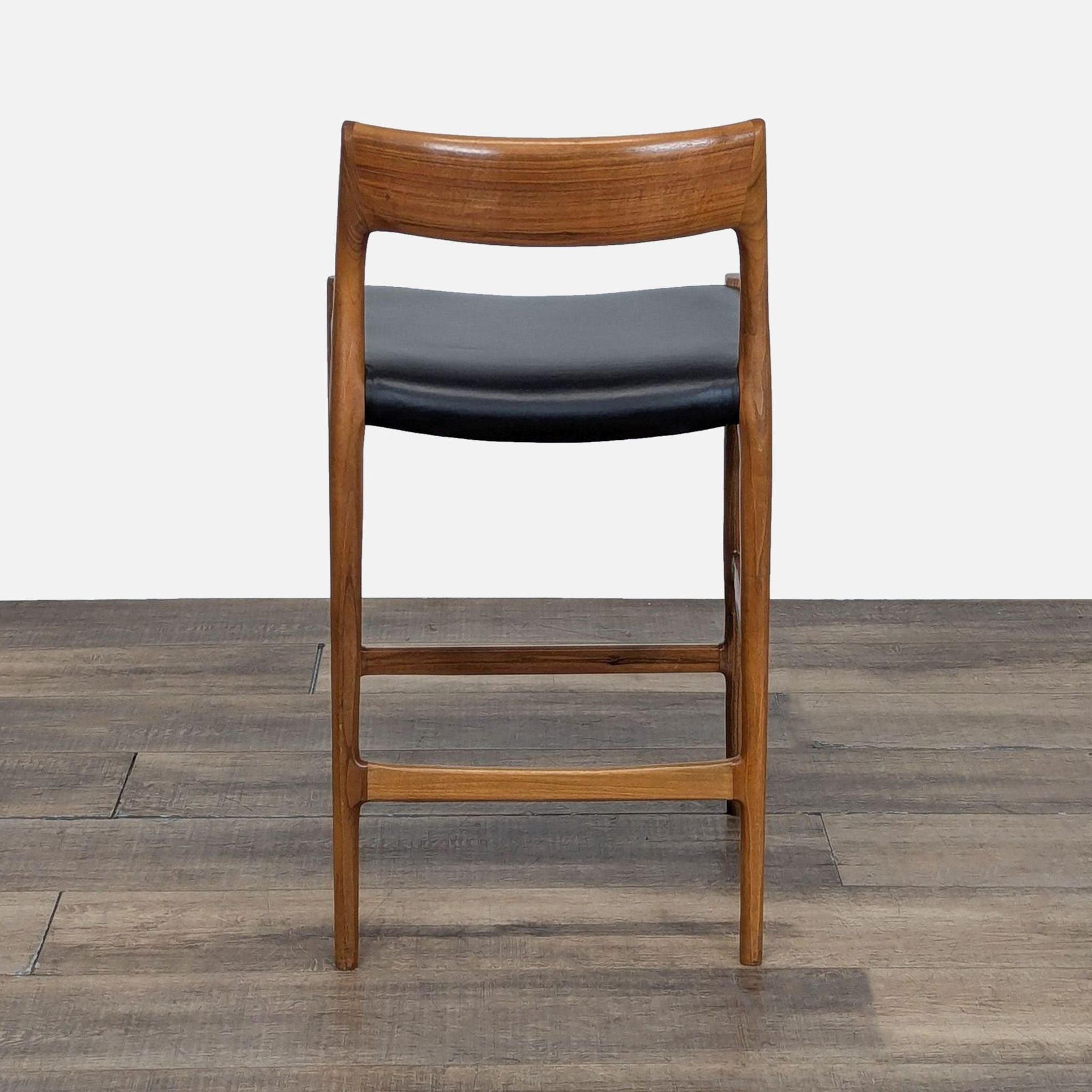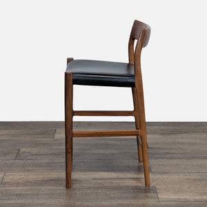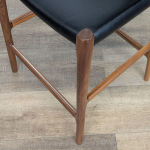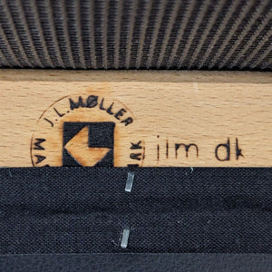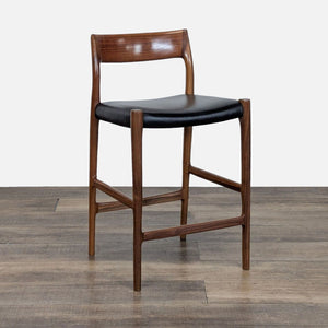 Møller furniture is made by a company founded in 1944 by Niels Otto Møller. The stool is made in Denmark and is constructed of walnut with a leather seat.