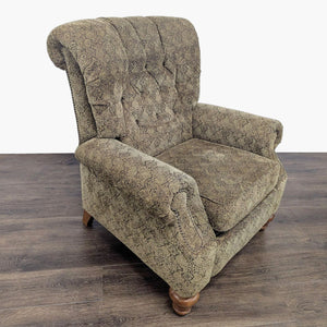 Features a traditional/formal style with a vintage feel, including a button-tufted back and elegant tulip legs.