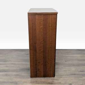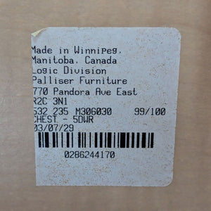 This Palliser Furniture dresser offers five spacious drawers, perfect for organizing your clothes and belongings. It features a classic brown wood finish and sturdy construction. The simple design with round knobs fits easily into any bedroom style. Durable and easy to use, this dresser is a practical choice for your home.