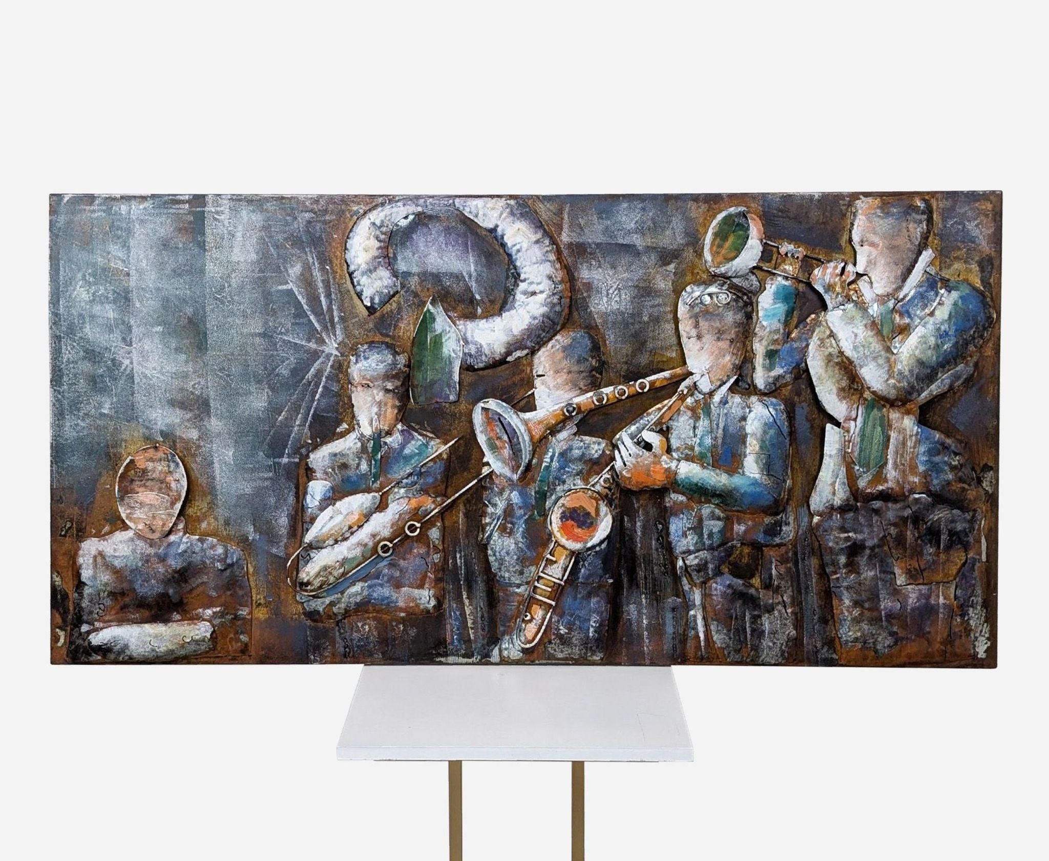 This interesting mixed media wall sculpture “Jazz Band” in full song designed by Primo.