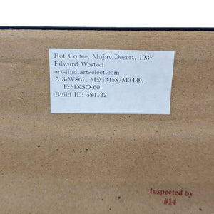 Edward Weston Black & White Print - "Hot Coffee, Mojave Desert, 1937". Professionally matted and framed.