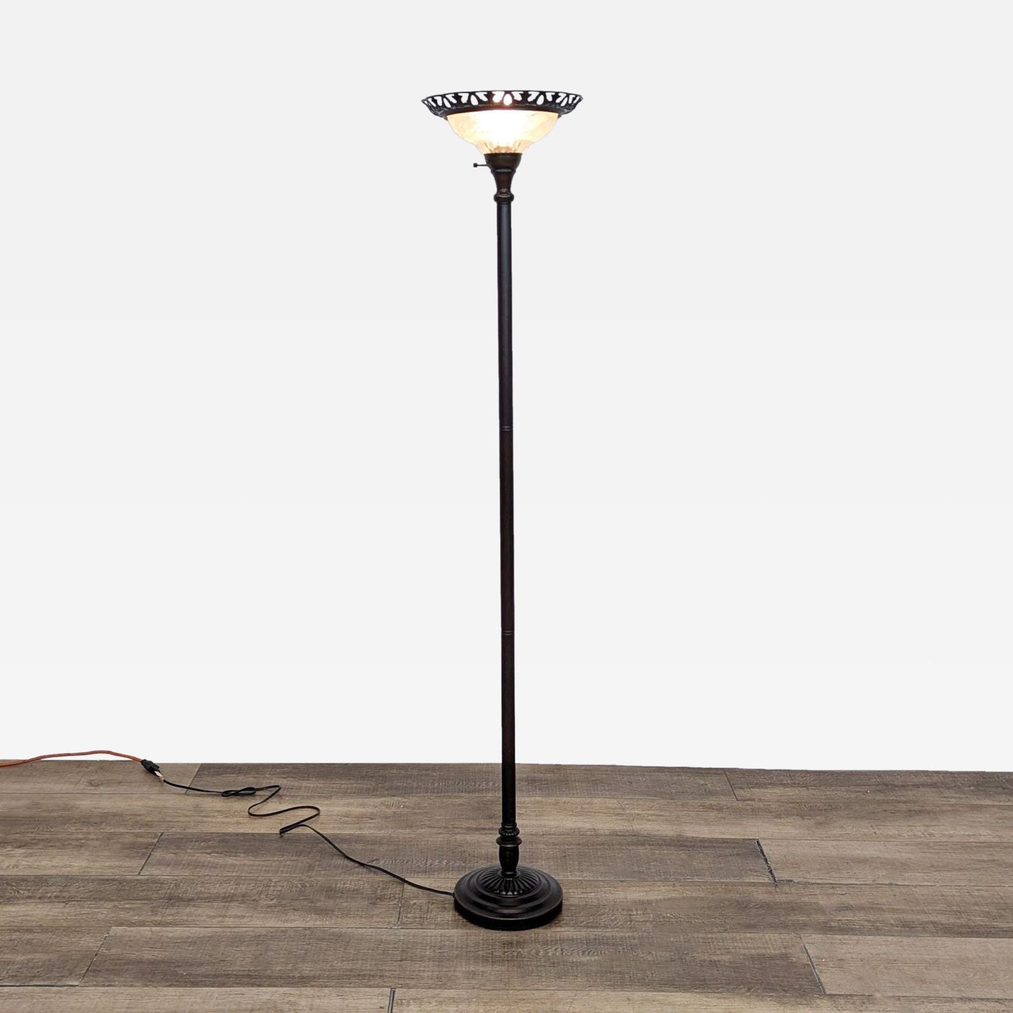 Bronze Floor Lamp with Etched Glass Shade - Reperch