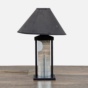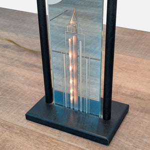 Art Deco Table Lamp with Etched Cityscape and Rope Light Accent