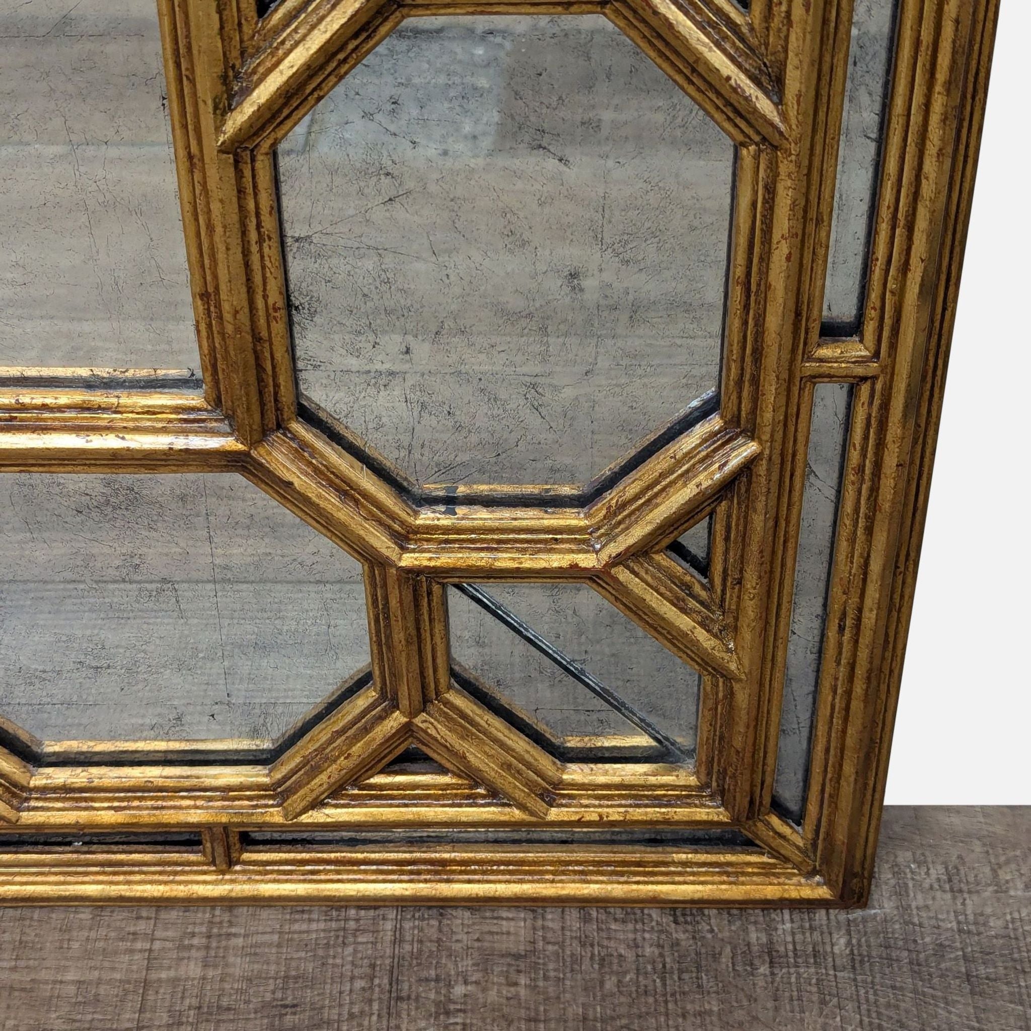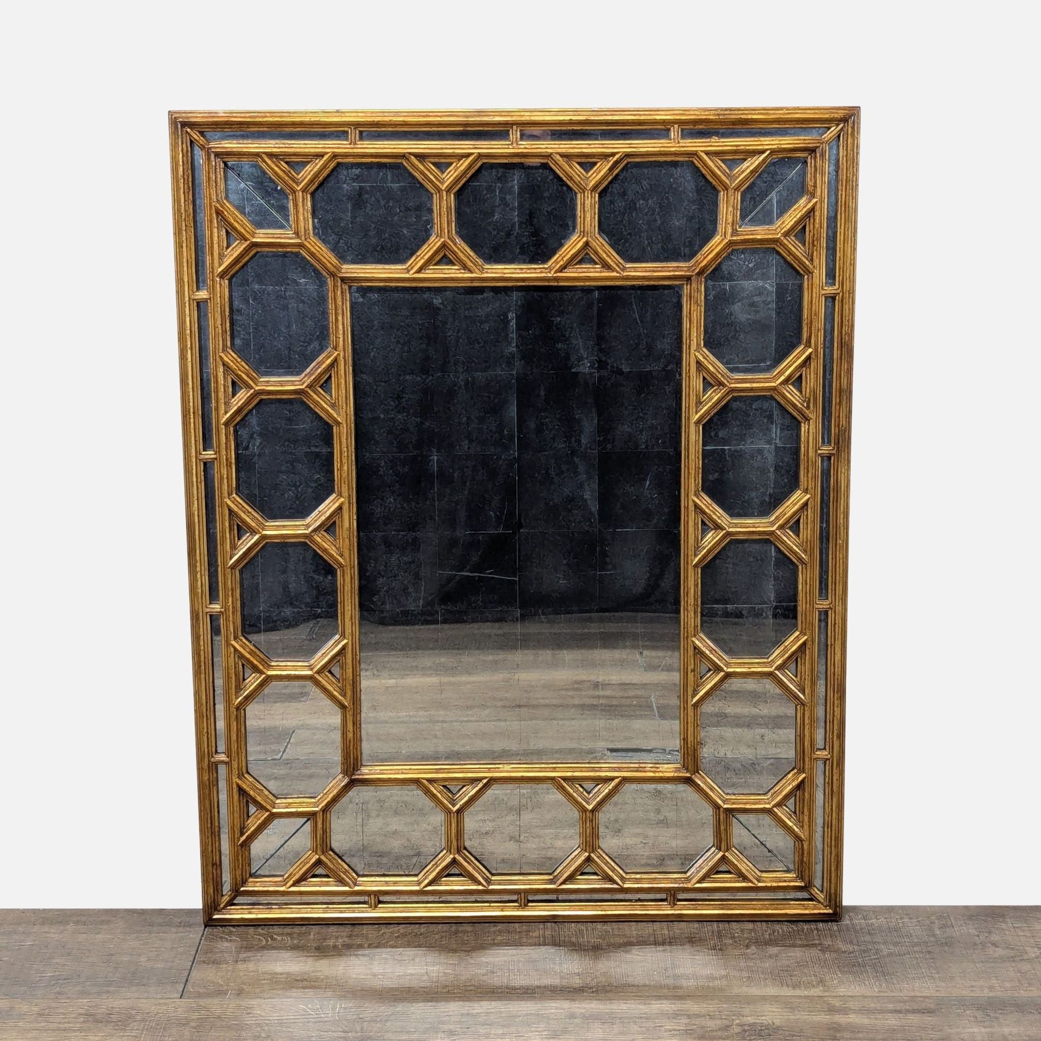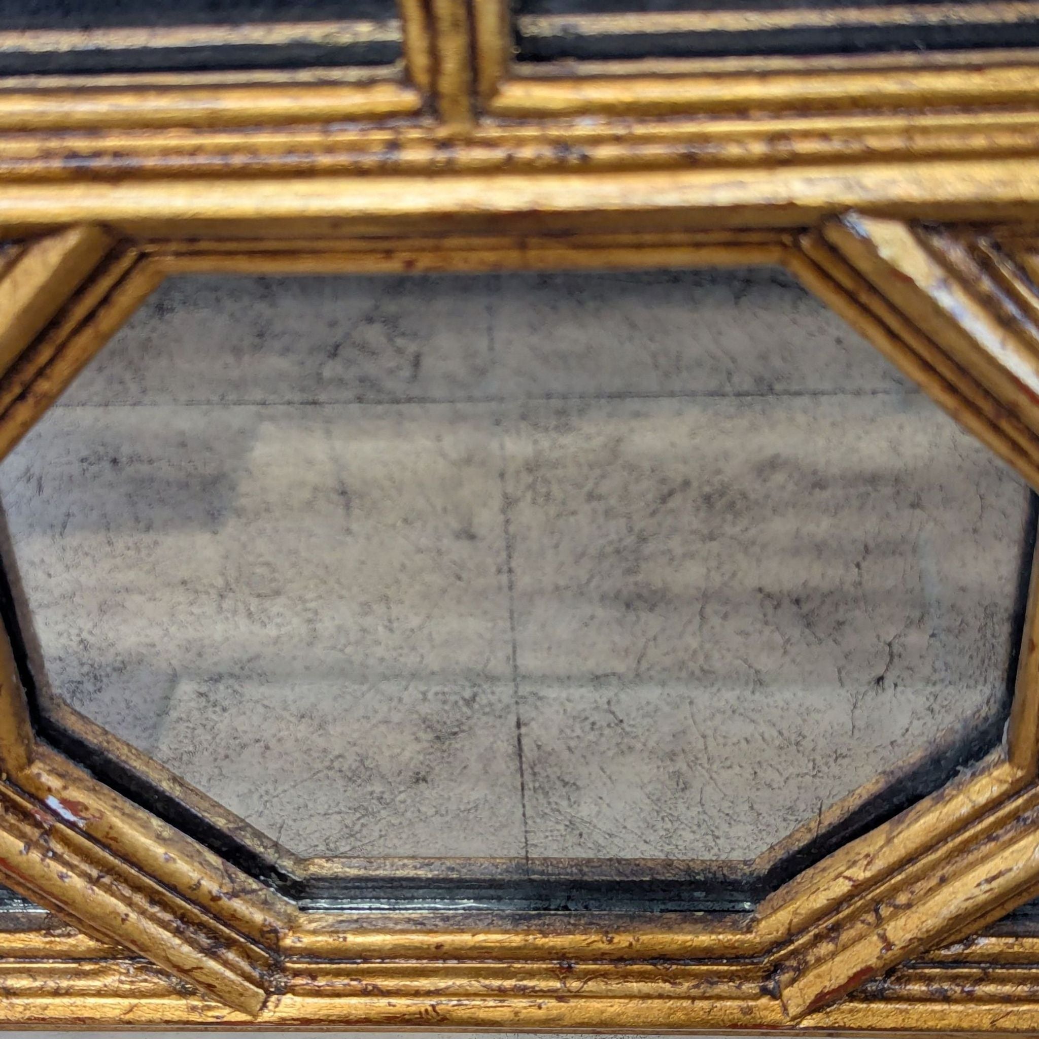 This beveled-edge antiqued mirror center is set in a frame of consecutive octagonal coffered mirrored plates.