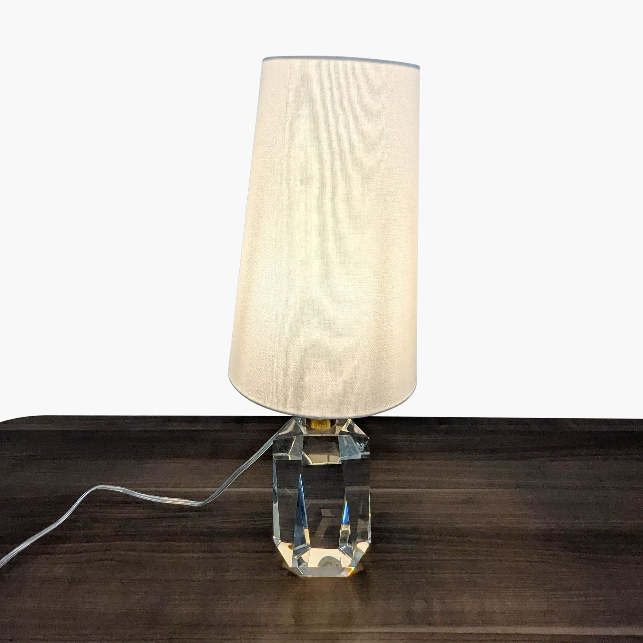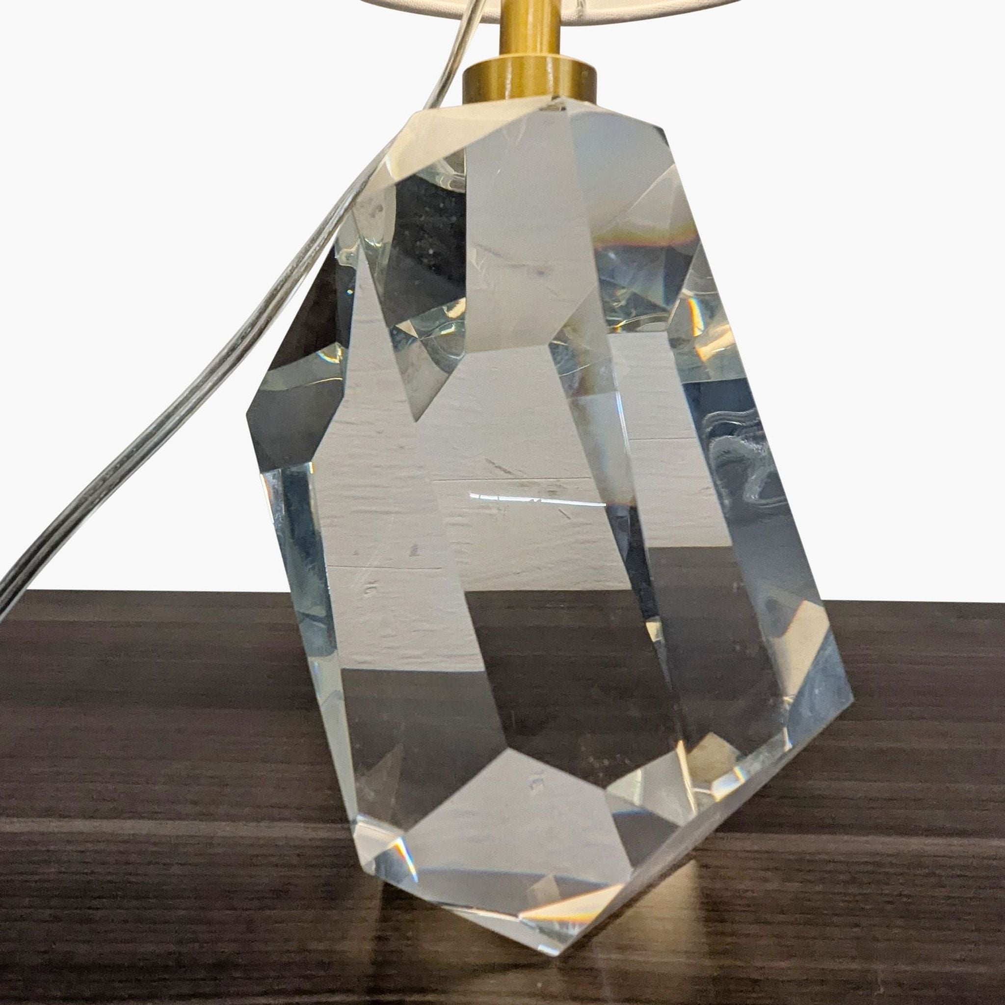 Designed by Kelly Wearstler, this lamp features a faceted, architectural body made of crystal with a linen tapered shade.