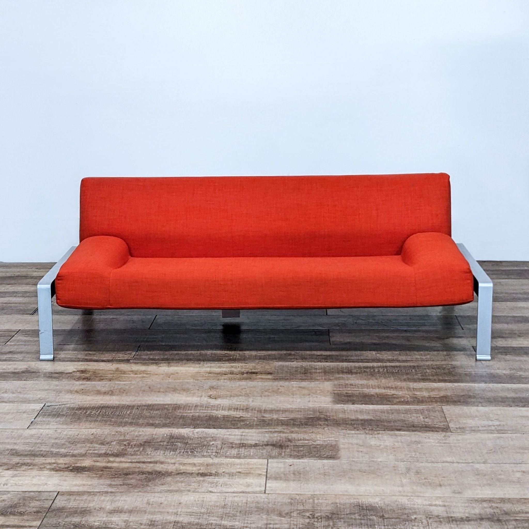 Modern Red Compact Sofa On Metal Frame With Low Arms