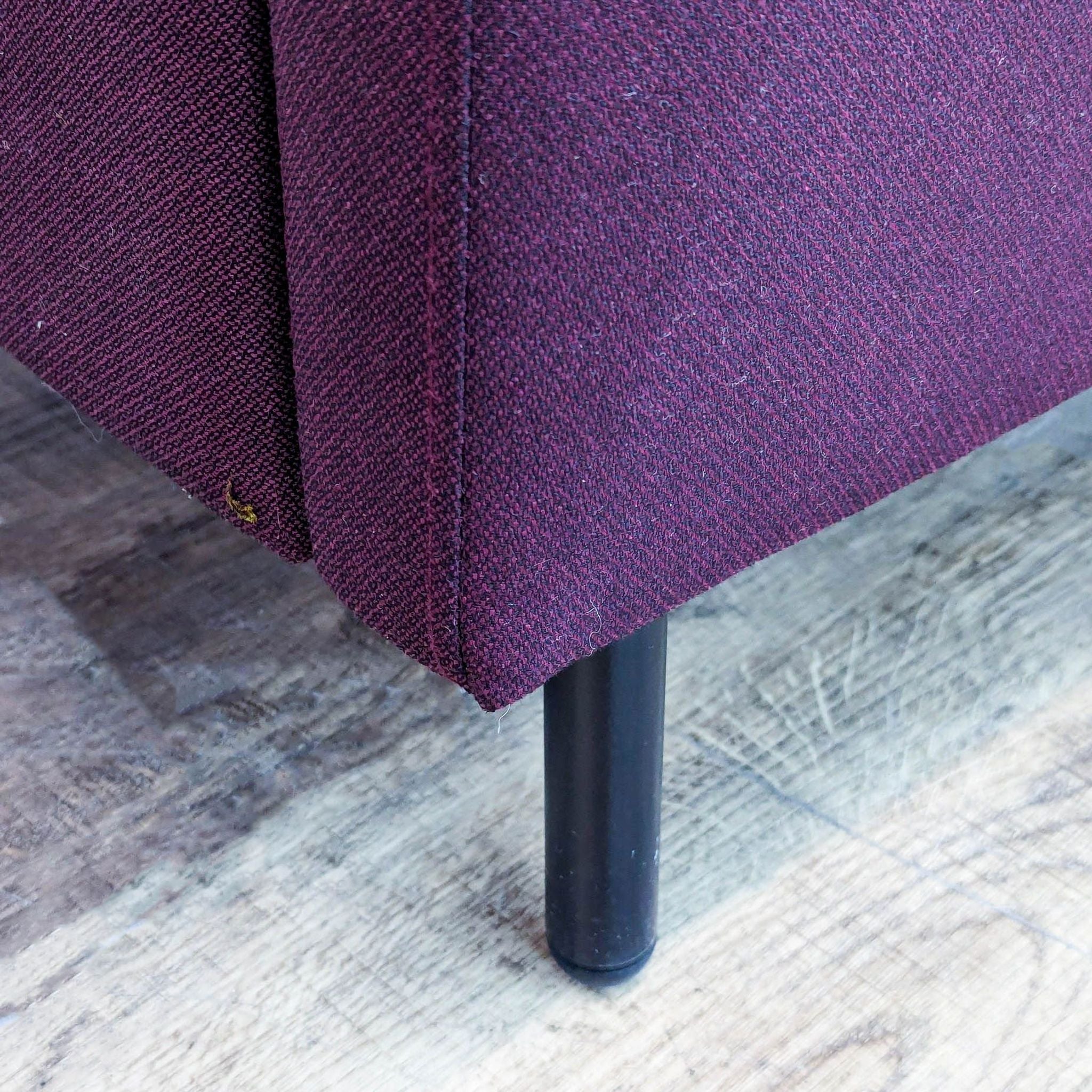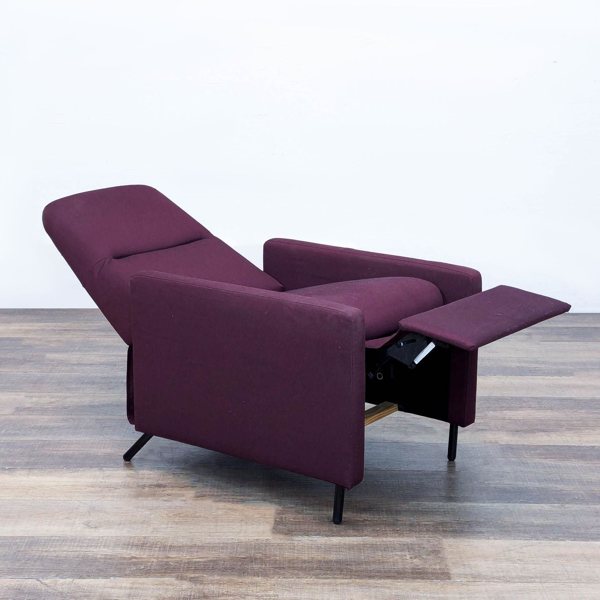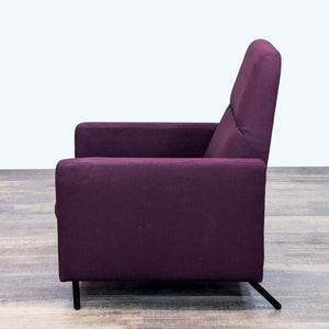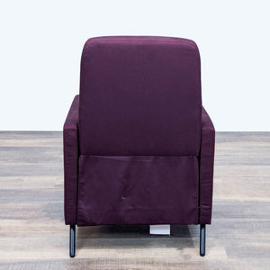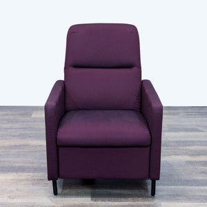 The Gistad recliner has modern style with a push back recline function and a deep purple upholstery and wood legs.