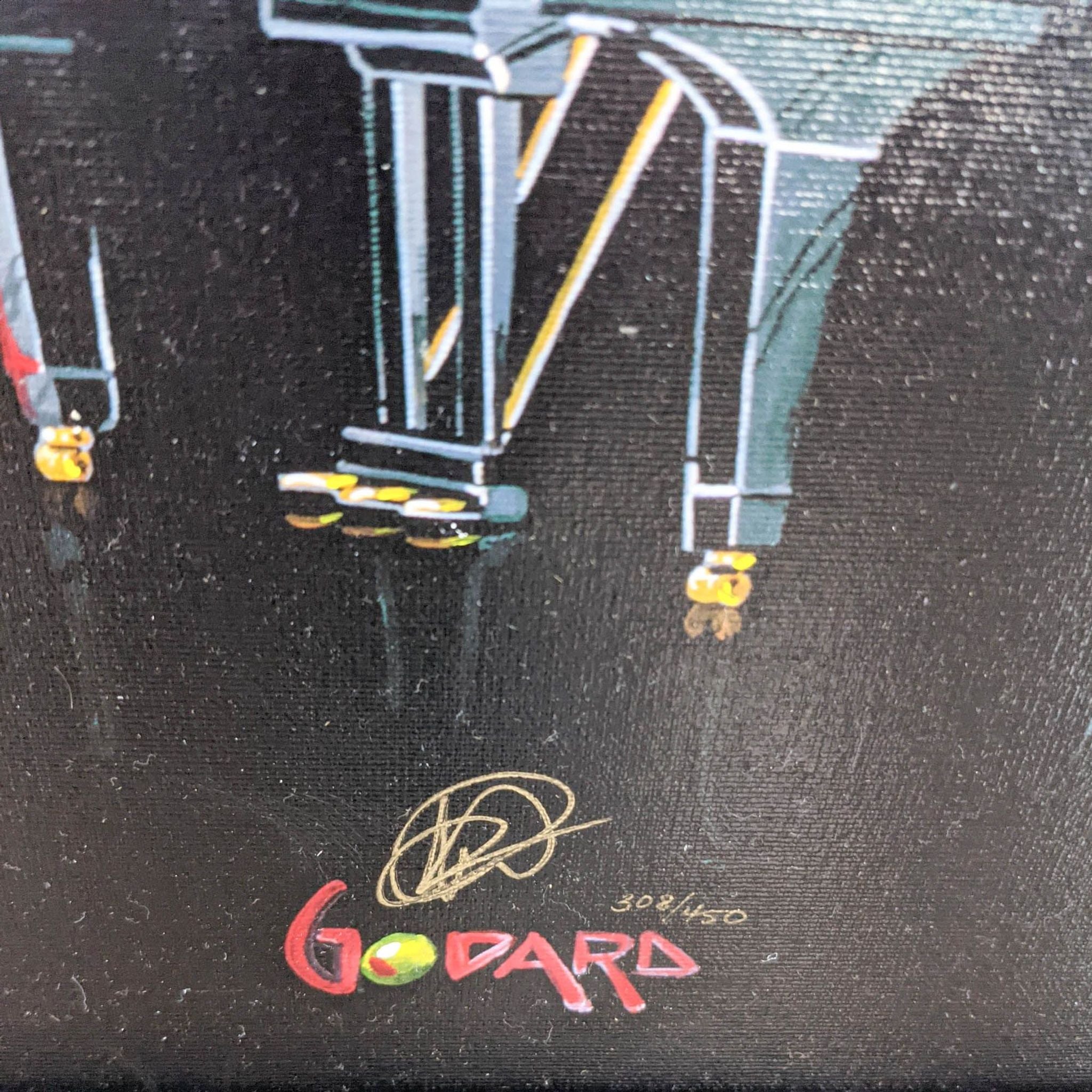 “Key of G” Giclee on Canvas by artist Michael Godard. Giclee on canvas has hand embellishment and hand signed in pigment by the artist. Print 308 of 450. Certificate of Authenticity. From Michael Godard about “Key of G” Nothing sings to the soul like the music from the piano and of course a glass of good wine makes it all the more pleasant. She sits atop the rim taking all of this in to her favorite tune and of course it’s in the Key of "G". ~M.G.