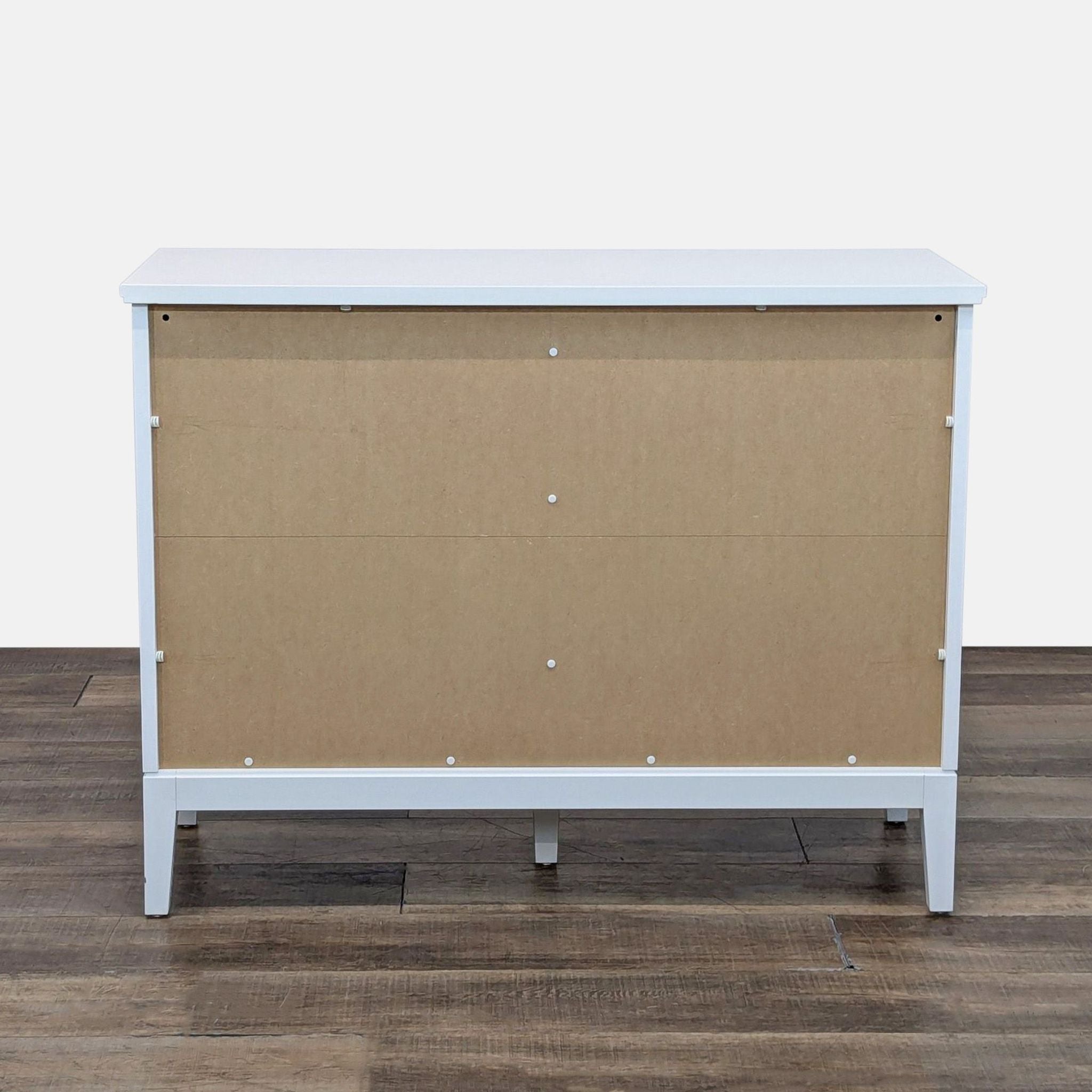 Fiberboard construction with folding doors and adjustable interior shelving and feet.
