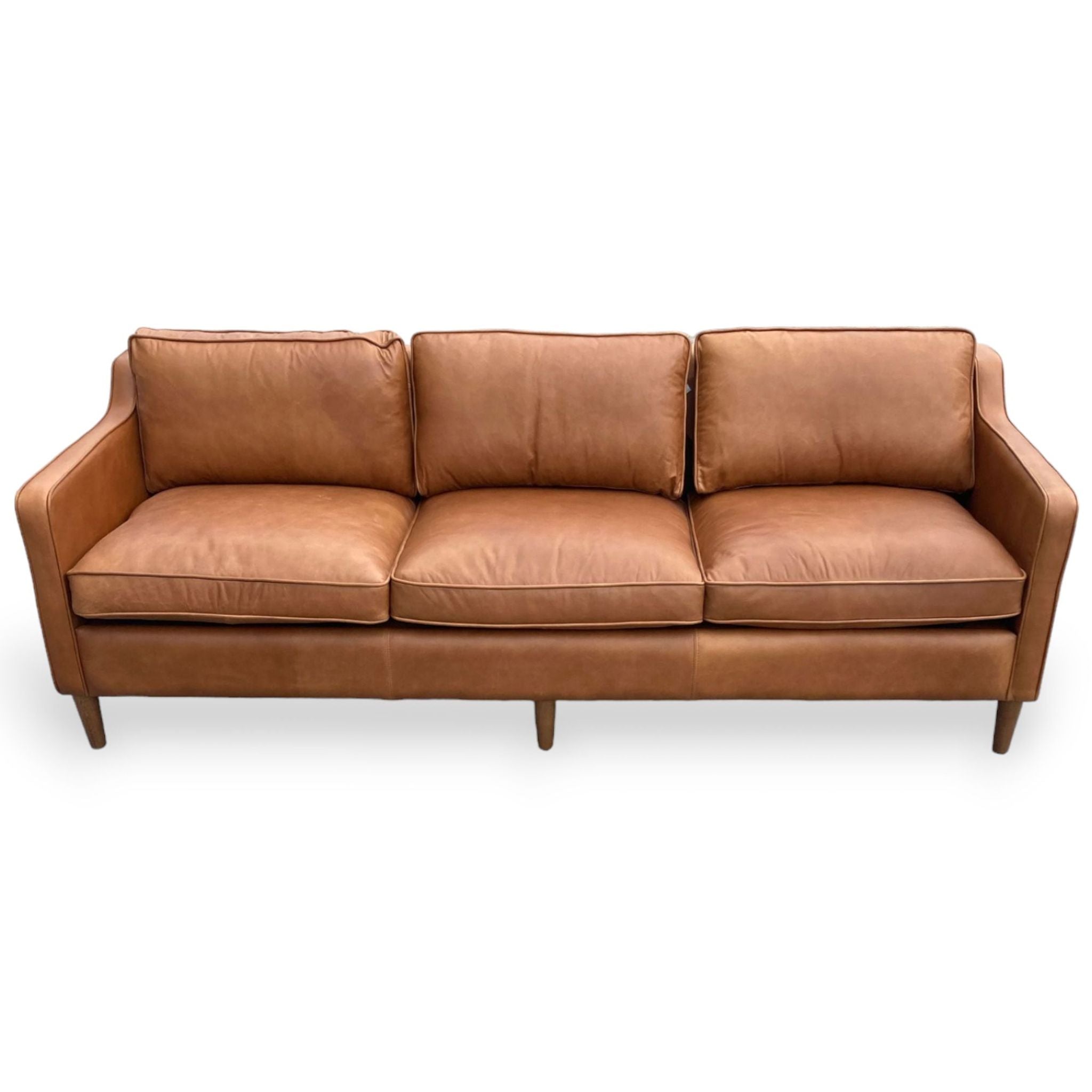 Modern Saddle Color Leather Sofa With Narrow Arms And Wood Feet *** West Elm Hamilton Leather Sofa 91” Fabric: Charme Leather, Cigar Overall: 90""w x 35.8""d x 31.5""h.