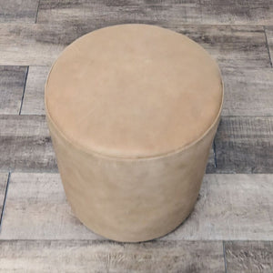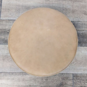 Tan Leather 16" Round Ottoman Provides Extra Seating, Footrest Or Small Side Table