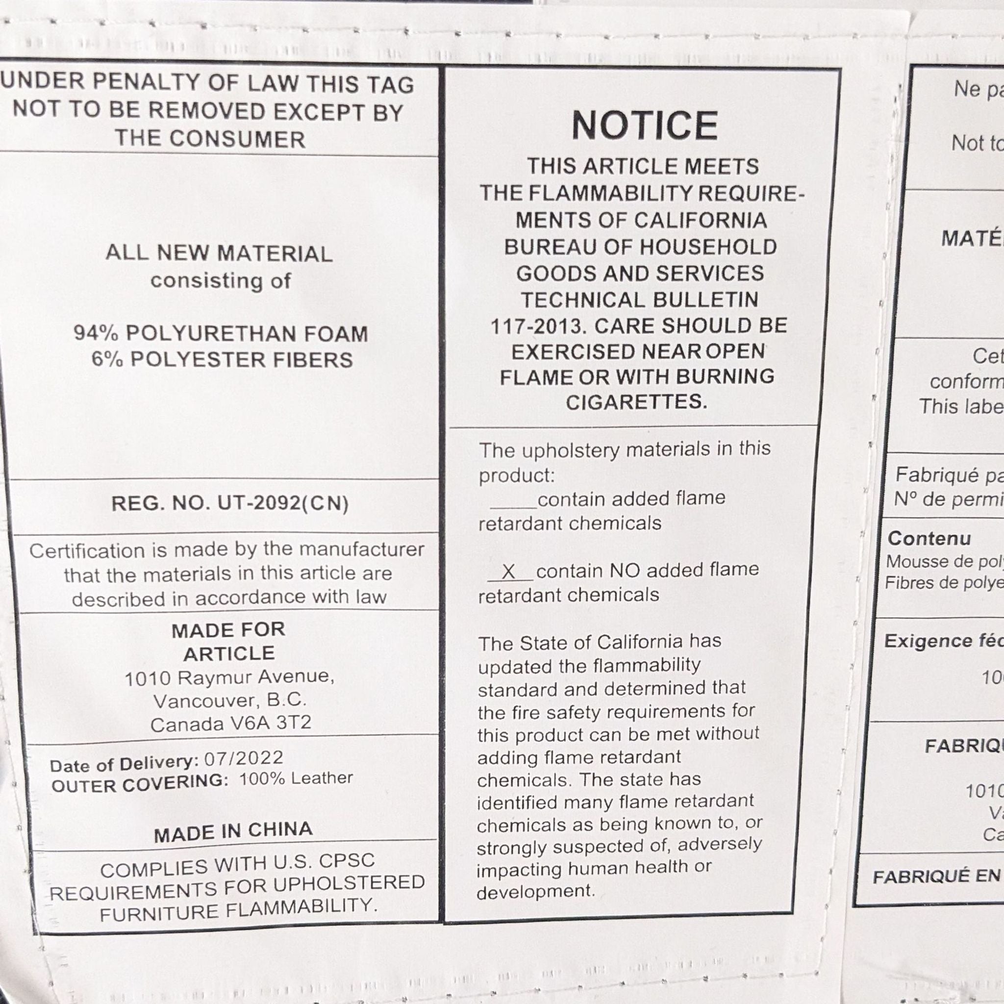 | Item Location | Bay Area |