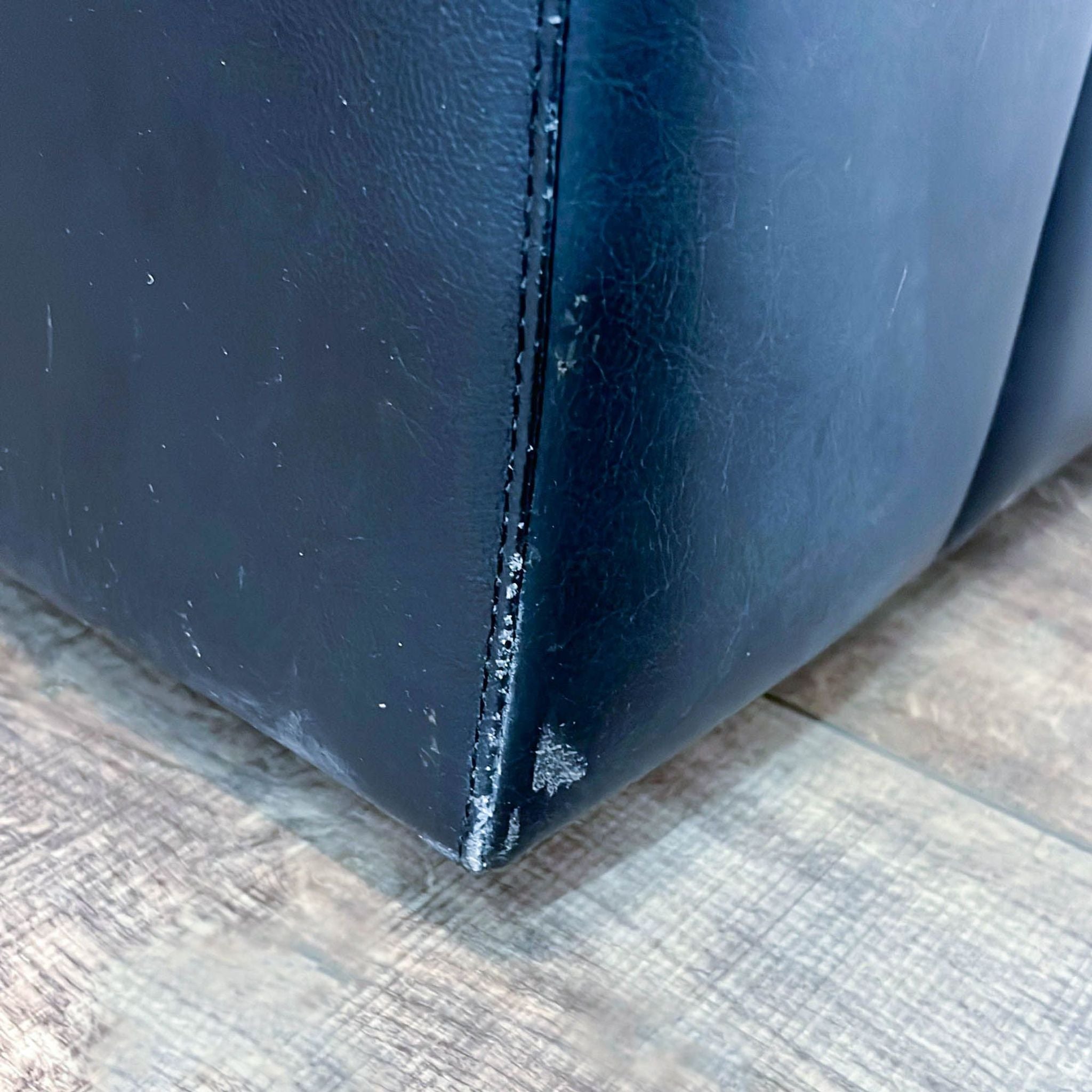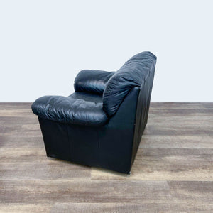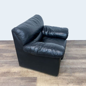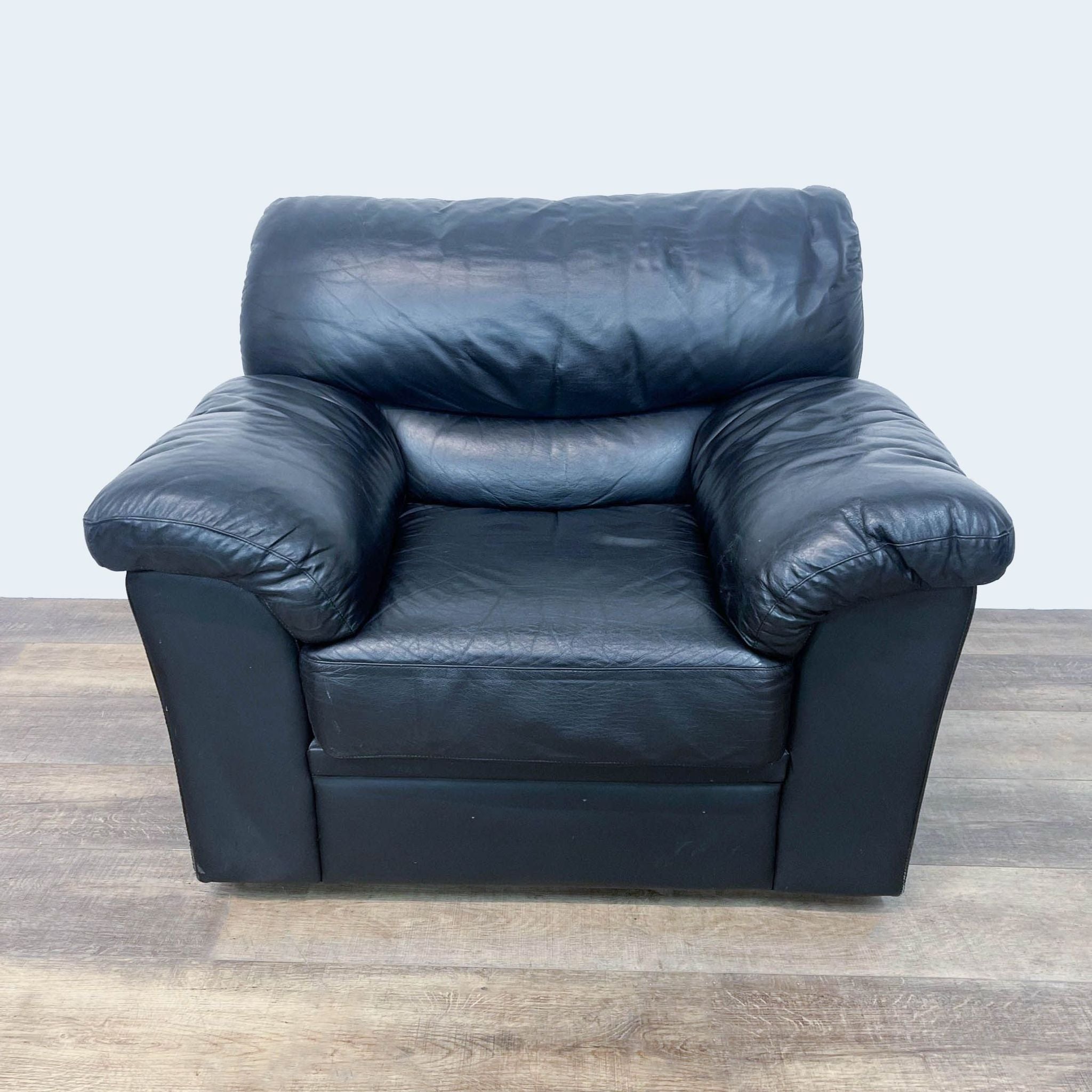 This transitional black leather lounge chair features plush armrests with a large overstuffed backs and seat.