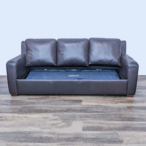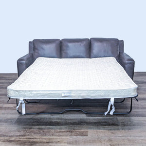 Top Brand Clean Line 80" Brown Leather Sleeper Sofa With Queen Mattress
